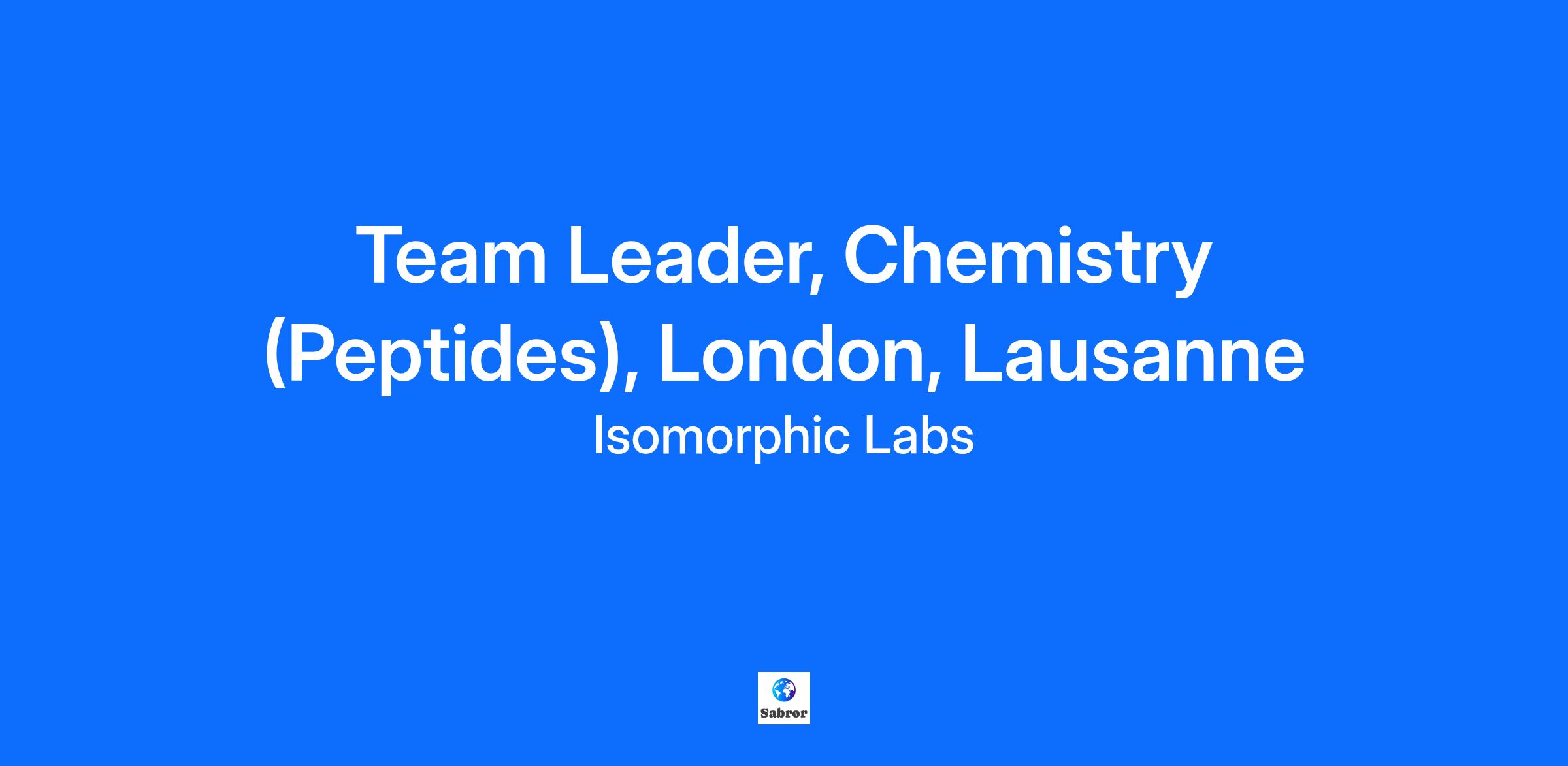 Isomorphic Labs is applying frontier AI to help unlock deeper scientific insights, faster breakthroughs, and life-changing medicines with an ambition to solve all disease. The future is coming. A future enabled and enriched by the incredible power of machine learning. A future in which diseases are curtailed or cured starting with better and faster drug discovery. Come and be part of an interdisciplinary team driving groundbreaking innovation and play a meaningful role in contributing towards us achieving our ambitious goals, while being a part of an inspiring and collaborative culture. The world we want tomorrow is the one we’re building today. It starts with the culture at this company. It starts with you. ABOUT ISO Isomorphic Labs (IsoLabs) was launched in 2021 to advance human health by building on and beyond the Nobel-winning AlphaFold system. Since then, our interdisciplinary team of drug discovery experts and machine learning specialists has built powerful new predictive and generative AI models that accelerate scientific discovery at digital speed. Our name comes from the belief that there is an underlying symmetry between biology and information science. By harnessing AI’s powerful capabilities, we can use it to model complex biological phenomena to help design novel molecules, anticipate how drugs will perform and develop innovative medicines to treat and cure some of the world’s most devastating diseases. We have built a world-leading drug design engine comprising AI models that are capable of working across multiple therapeutic areas and drug modalities. We are continually innovating on model architecture and developing cutting-edge capabilities to advance rational drug design. Every day, and with each new breakthrough, we’re getting closer to the promise of digital biology, and achieving our ambitious mission to one day solve all disease with the help of AI. ABOUT THE EXPLORATORY SCIENCES TEAM Join our expanding Exploratory Sciences team, focused on tackling proteins which are critical for disease biology, but have been traditionally considered intractable. We are a small, multi-disciplinary team within the Drug Design and Medical Research function at Isomorphic Labs. We work at the interface of machine learning, chemical biology and drug discovery to apply our platform to some of the toughest problems in drug discovery, and we collaborate closely with multiple teams across Isomorphic Labs. We have a strong growth mindset and prioritise continued development and learning as we hope to build the next generation of drug discovery scientists. We are expanding and investing in our multi-disciplinary Peptides team within Exploratory Sciences, looking to recruit a number of talented scientists to drive projects towards the clinic. This role is for a Team Leader, Chemistry, specialising in peptides. YOUR IMPACT As a member of the Peptides team, you will deliver the development and application of a state-of-the-art peptide design platform. This will involve applying our platform in novel ways, and critically driving portfolio projects towards the clinic. You will need to design and execute on bold strategies to tackle problems that are currently considered impossible. Working alongside world leading AI/ML and Drug Design Platform teams, you will deliver scientific expertise and strategic direction to drive both improvements in the Platform and help to solve unsolved drug design problems. Ready to elevate your scientific career? Isomorphic Labs offers a unique environment to tackle stimulating challenges, pushing your boundaries and accelerating your personal and professional growth. If you are a skilled and ambitious scientist looking to take the next step in your career, joining Isomorphic Labs will challenge you with novel problems and provide an amazing opportunity for professional growth and development. WHAT YOU WILL DO * Apply your knowledge of cutting-edge peptide design and synthesis to compose novel approaches to long standing challenges in drug discovery. * Utilise internal AI/ML models to solve challenging drug discovery problems. * Collaborate in multidisciplinary teams to support data-driven delivery of high quality scientific solutions. This will require understanding the fundamentals of diverse disciplines including ML, Biology, Chemistry and DMPK, and communicating effectively with experts in those fields. * Manage members of the growing team and CRO resource, mentoring and supporting their development. * Represent the company externally, interacting with existing and prospective collaborators and contract research organisations (CROs). * Prepare detailed scientific proposals and reports to support new and ongoing programs. * Embrace and champion our culture of inclusion and continuous professional development. SKILLS AND QUALIFICATIONS ESSENTIAL: * PhD in Chemistry, or a related technical field, or equivalent industrial experience. * 5+ years’ professional experience in a Chemistry role, either operating within a biotech or pharma setting, or within a Post Doc position. * Practical experience in the design and synthesis of therapeutic peptides, ideally applying these skills to active drug discovery projects. * Experience of leading a high-performing team, mentoring and empowering people to thrive in their roles. * Experience of coding in Python, or a willingness to learn in-role. * A genuine passion and enthusiasm for applying AI/ML to drug design and how this can transform the field. * Excellent communication (written and verbal) and interpersonal skills, with an ability to work effectively in a cross-functional, collaborative team environment. * A track record of creative problem solving with a strong growth mindset, adaptability, and eagerness to learn new concepts and techniques. NICE TO HAVE: * Experience working with or managing activities at contract research organisations (CROs). * Experience with peptide screening techniques. * Experience of contr