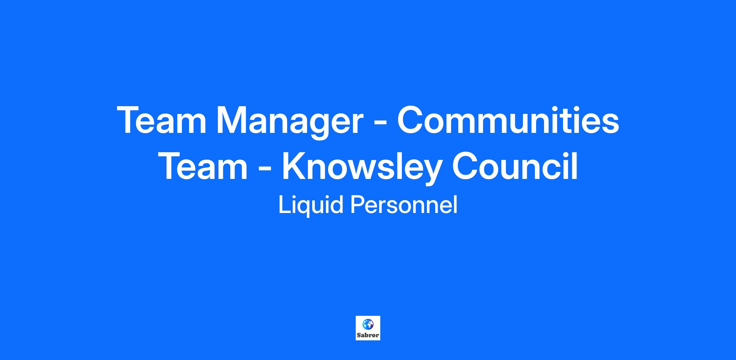 Job Title: Team Manager - Communities Team Location: Knowsley Council Rate: £44.86 per hour An exciting job role has recently become available for a Team Manager. They are looking for a new member to join the Communities team in Knowsley. What will your responsibilities be? In this role, you will manage the staff across the team to operate to the highest standard, ensuring effective case management is delivered to vulnerable customers and their carers or representatives. You will oversee appropriate support planning and case management, manage and plan services to meet the needs of individuals, and stay abreast of legislative developments and strategic requirements. You will establish and improve service standards through information exchange and collaboration with partnership, commissioning, care management, and provider colleagues. Ensuring compliance with legal, regulatory, ethical, and social requirements is a key part of your responsibilities. Additionally, you will implement and monitor compliance with quality assurance systems and carry out quality audits to maintain high standards of service delivery. Benefits: Rare managerial opportunity Competitive pay rate - highest in the area Initial 3 month contract with potential to extend Qualifications and Experiences: To be successful in this role you must have Social Work England registration, be eligible to work in the UK, hold a qualification in Social Work at degree level, and have post-qualified experience. How to apply? If this is a job for you, feel free to click apply below or if you want to learn more about it, please contact 0345 241 9590. Why Liquid Personnel? New ‘Faster Pay’ service getting you paid more quickly Twice weekly payroll Free DBS and compliance service Access to exclusive roles that aren’t available from other agencies Free access to Liquid’s exclusive social work training and CPD portal Your own dedicated consultant with extensive social work knowledge Access to a wide selection of social work positions across the UK “Refer a Friend” bonus – get £500 for each social worker you refer who we successfully place* “Find your own job” bonus – get £250 for bringing your own position to us * Liquid Personnel is an equal opportunities employer. Liquid Personnel Ltd is acting as an Employment Business in relation to this vacancy. * Terms and conditions apply to our bonus schemes. Reasonable Adjustments: If you consider yourself to have a disability or require any reasonable adjustment during the recruitment process or within the workplace, please highlight this at the earliest opportunity by contacting our team. With this information, we will provide appropriate support to you throughout the process and into your work placement. We are unable to support or accept applications from candidates who are residents within the Red or Amber list of the Code of practice for the international recruitment of health and social care personnel in England, based on the World Health Organisation (WHO) Workforce Support and Safeguard List. GH - 28217 BH - 188212