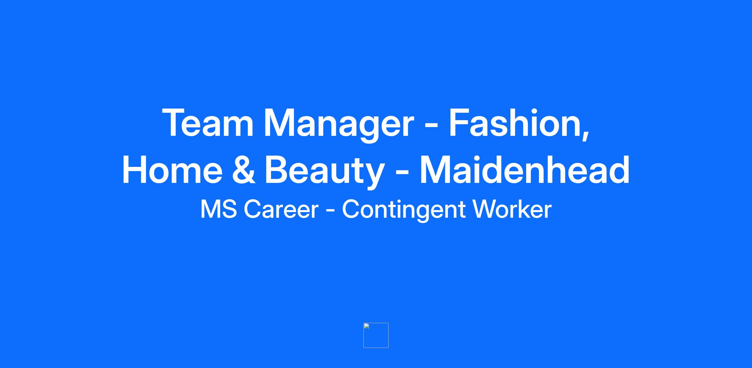 Team Manager - Fashion, Home & Beauty - Maidenhead