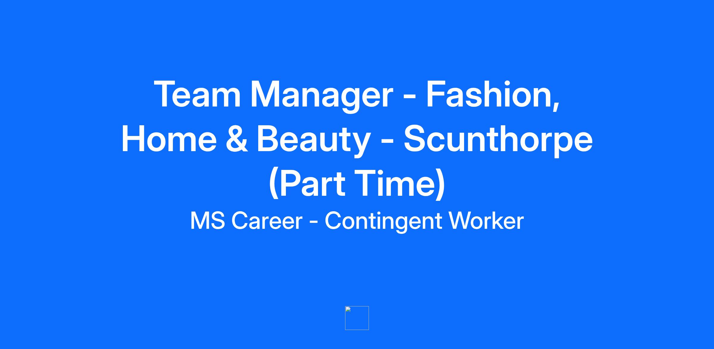 Team Manager - Fashion, Home & Beauty - Scunthorpe (Part Time)
