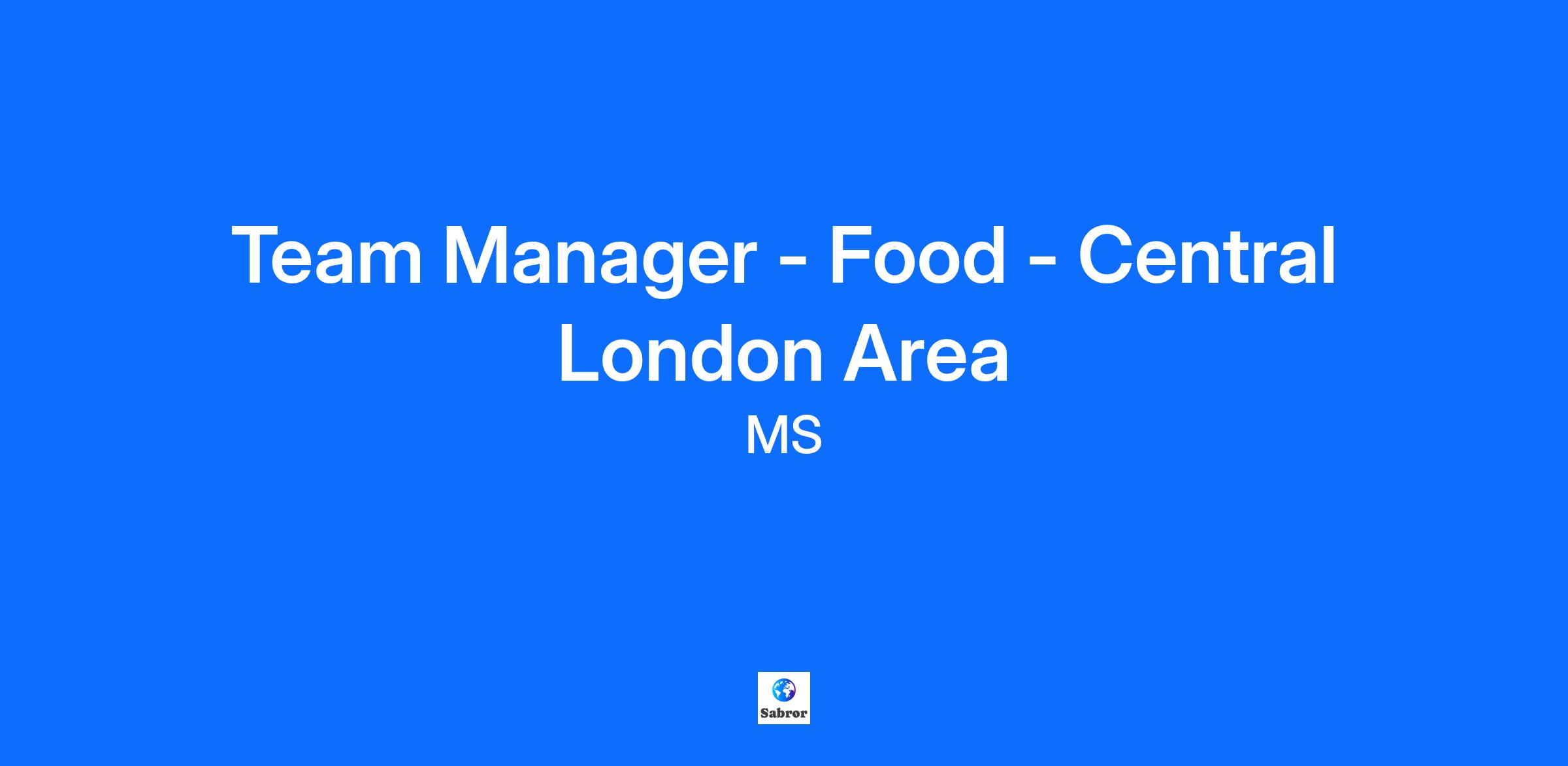 Team Manager - Food - Central London Area