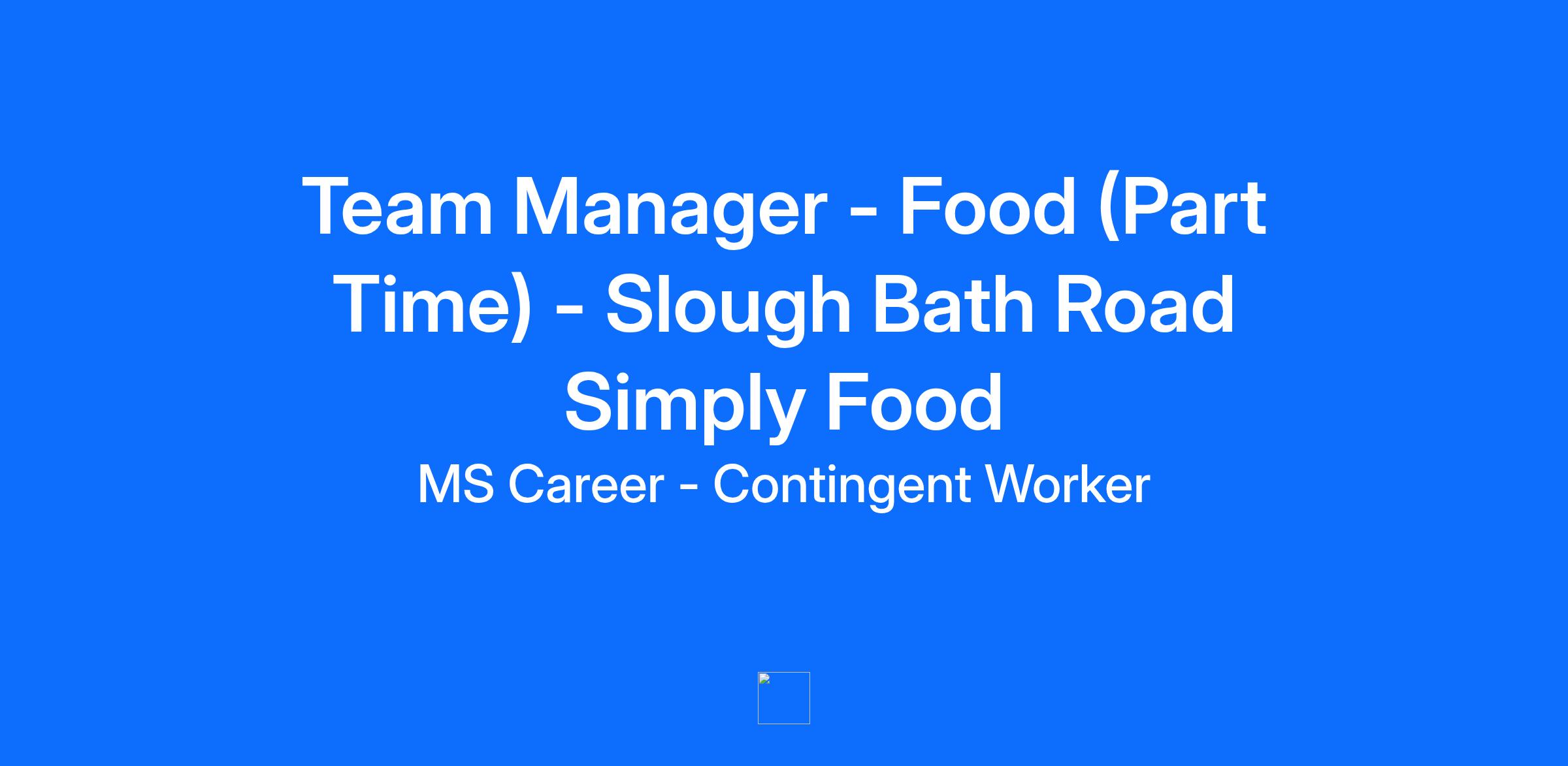 Team Manager - Food (Part Time) - Slough Bath Road Simply Food