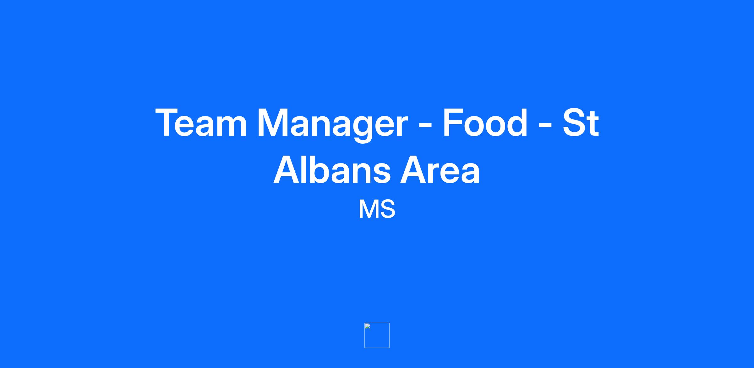 Team Manager - Food - St Albans Area