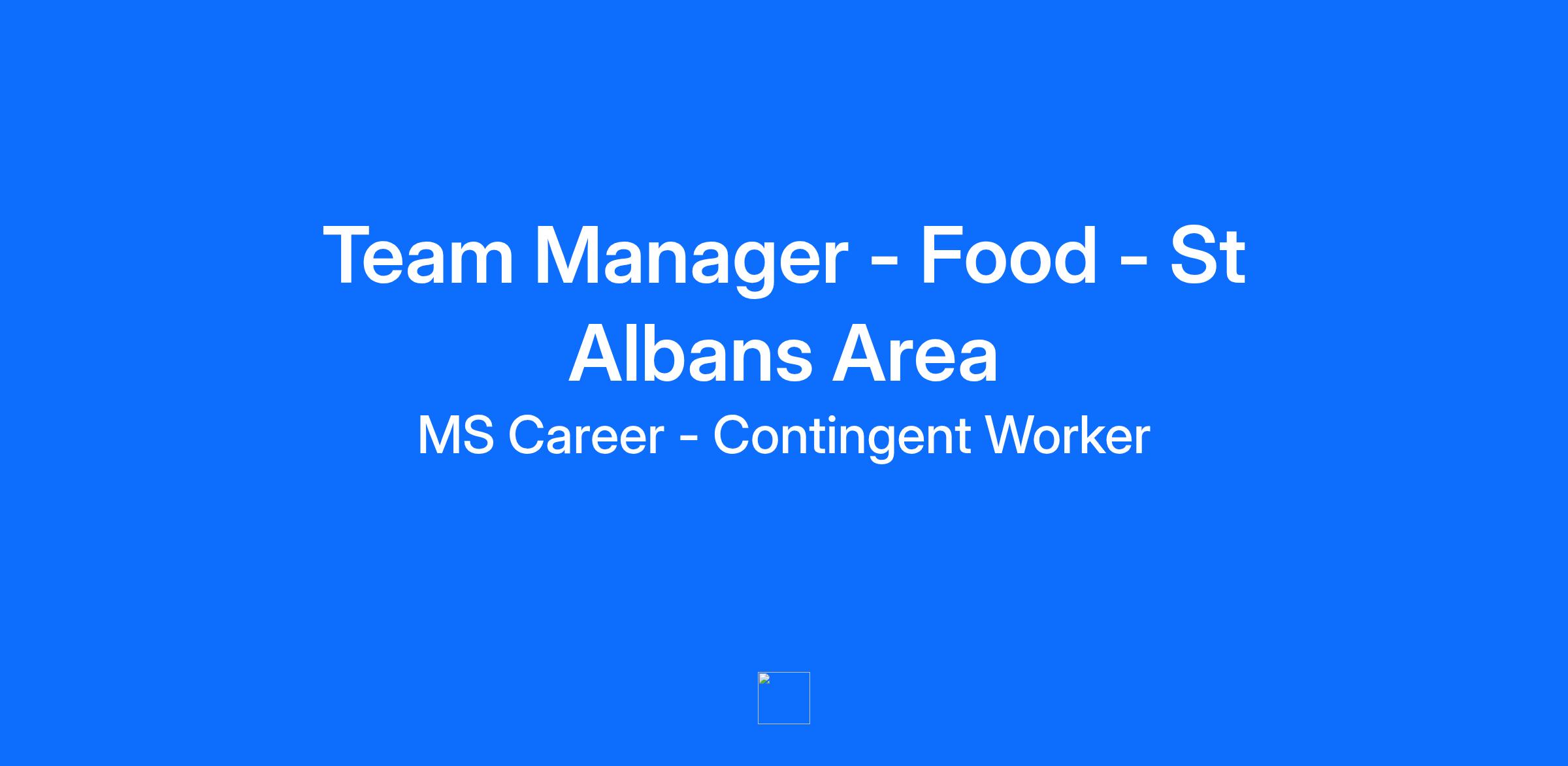 Team Manager - Food - St Albans Area