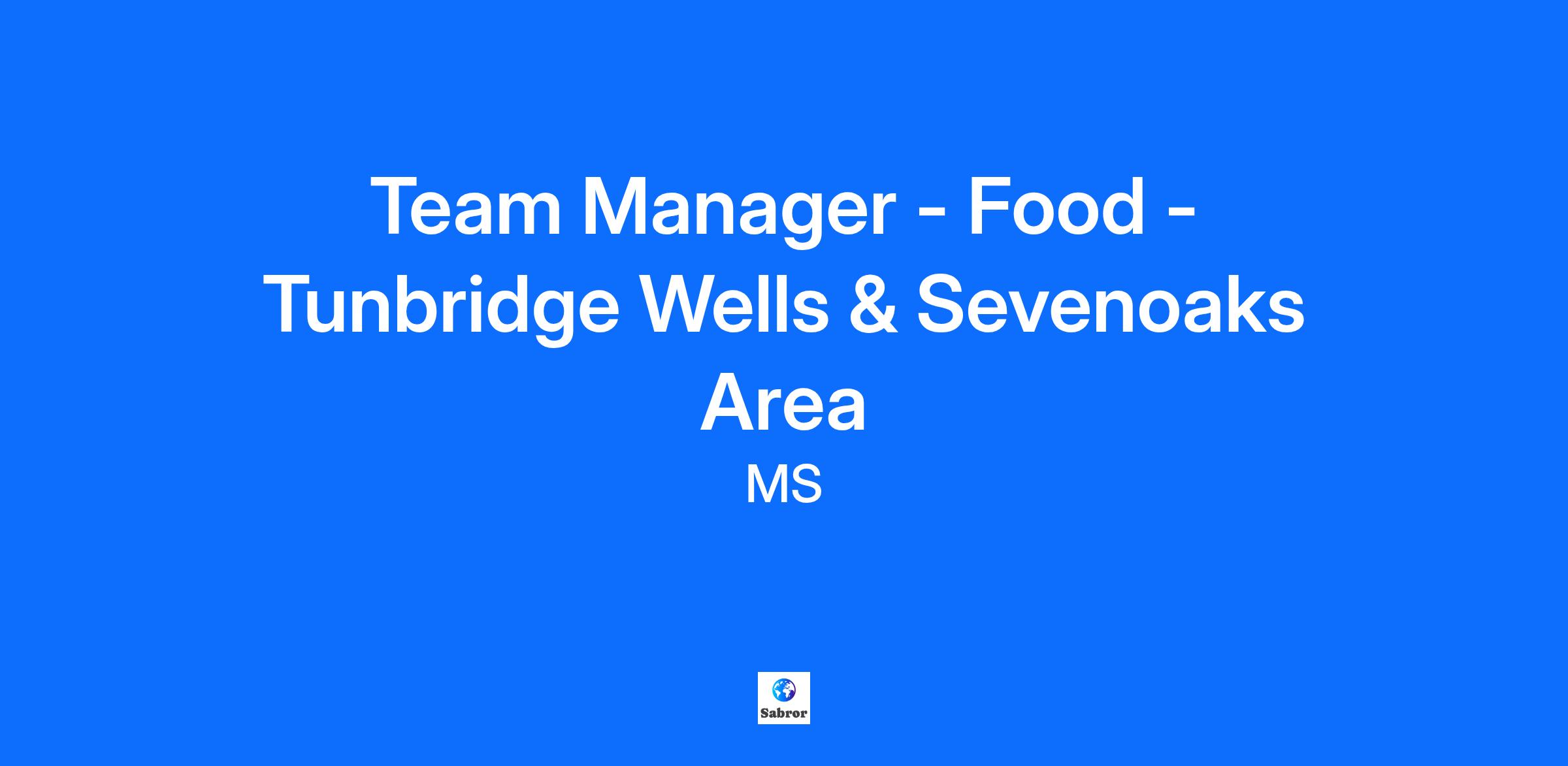 Team Manager - Food - Tunbridge Wells & Sevenoaks Area