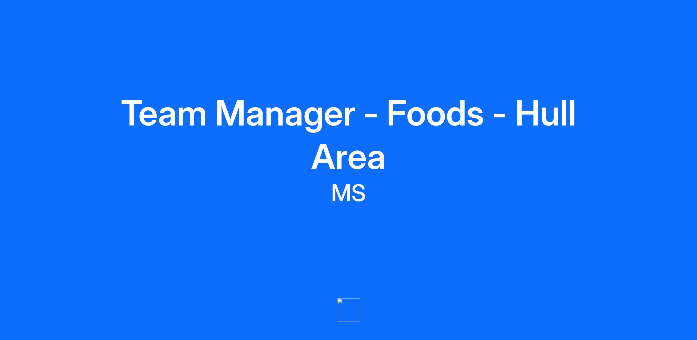 Team Manager - Foods - Hull Area