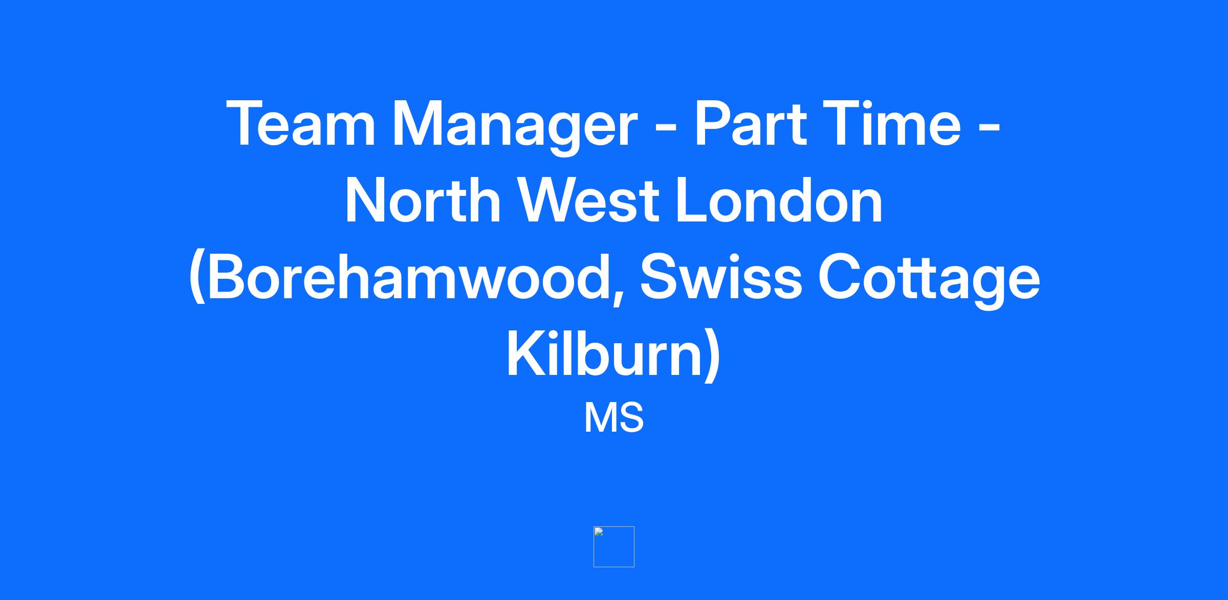 Team Manager - Part Time - North West London (Borehamwood, Swiss Cottage Kilburn)