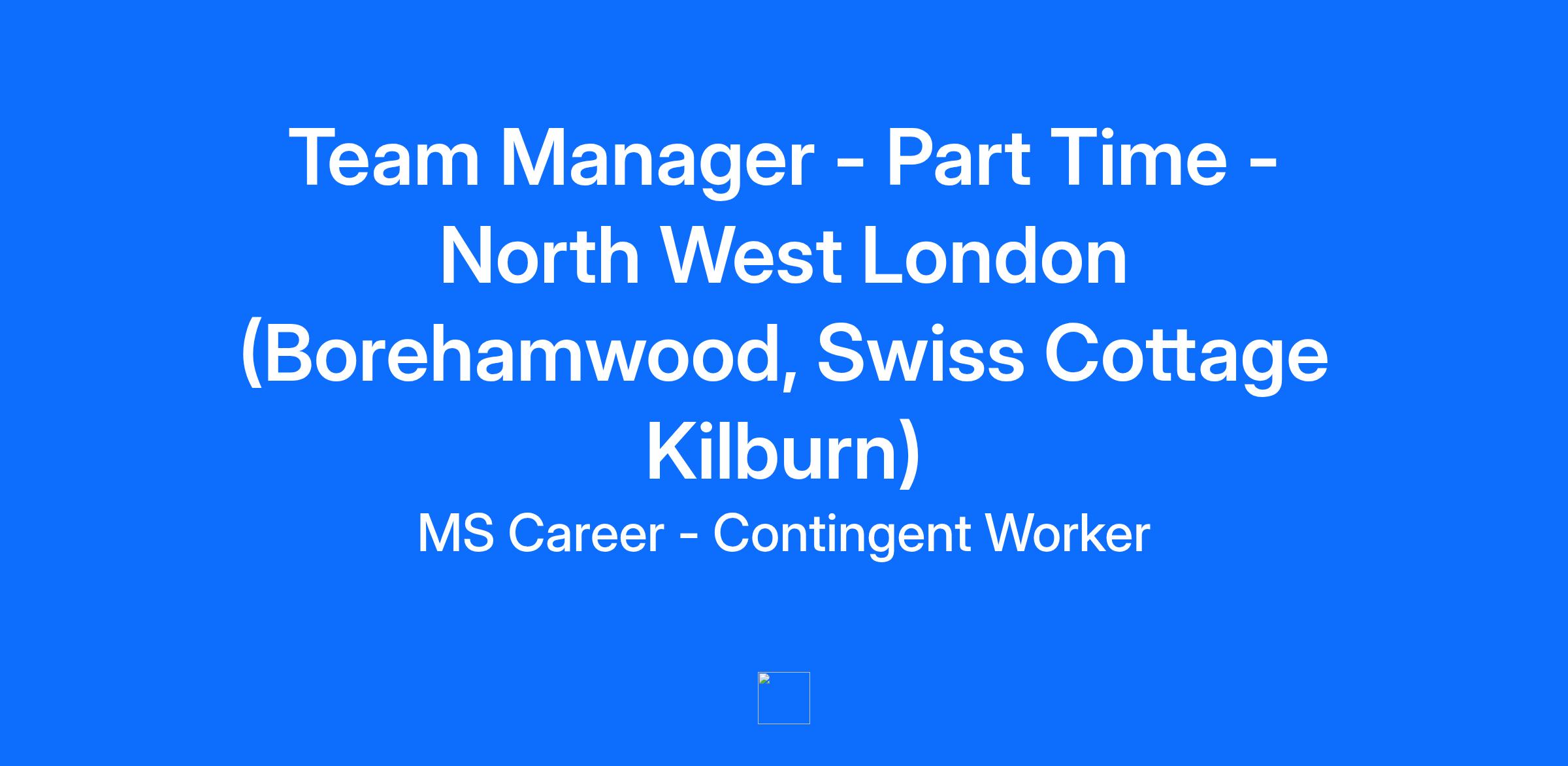 Team Manager - Part Time - North West London (Borehamwood, Swiss Cottage Kilburn)