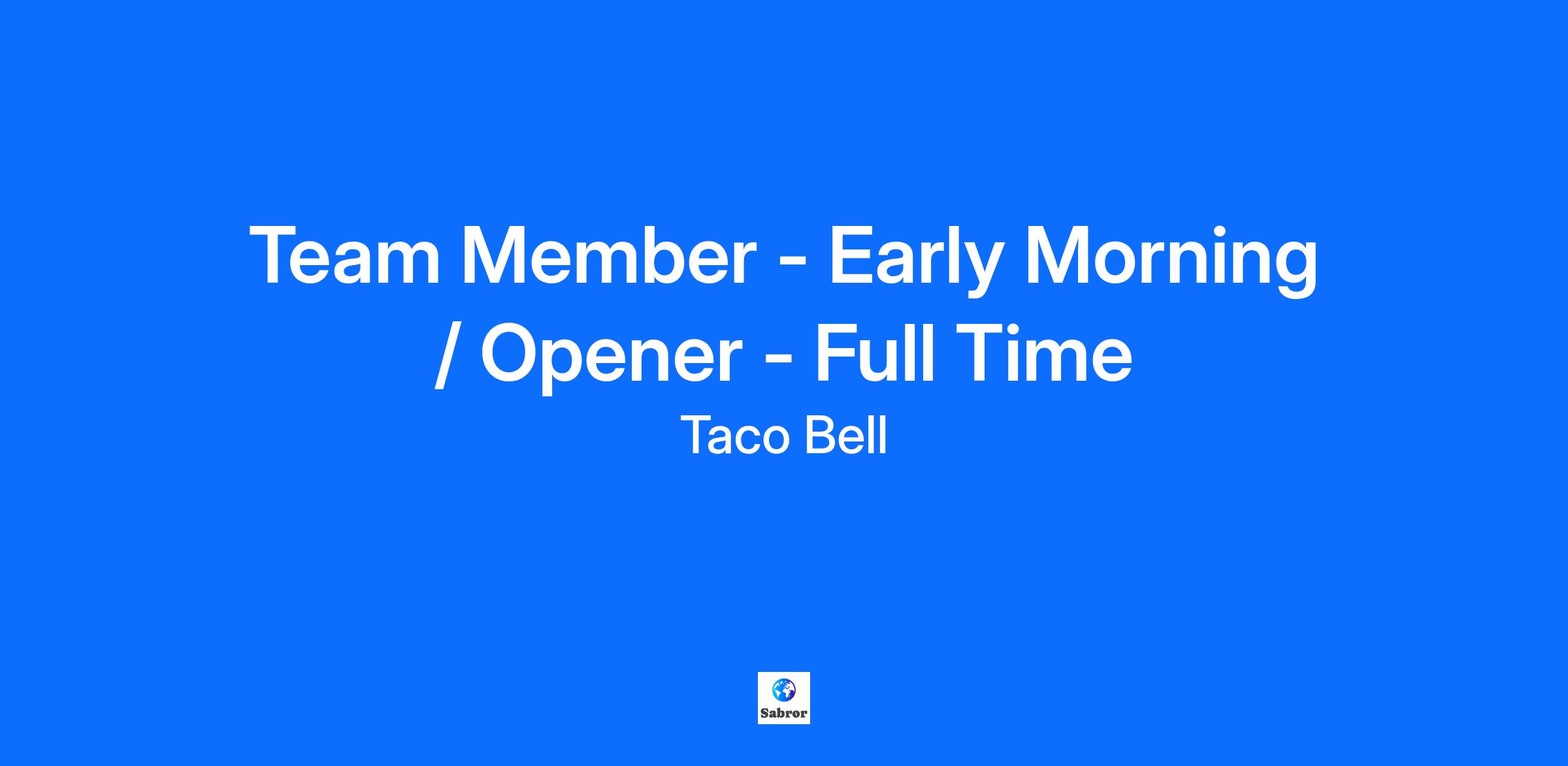 Team Member - Early Morning / Opener - Full Time