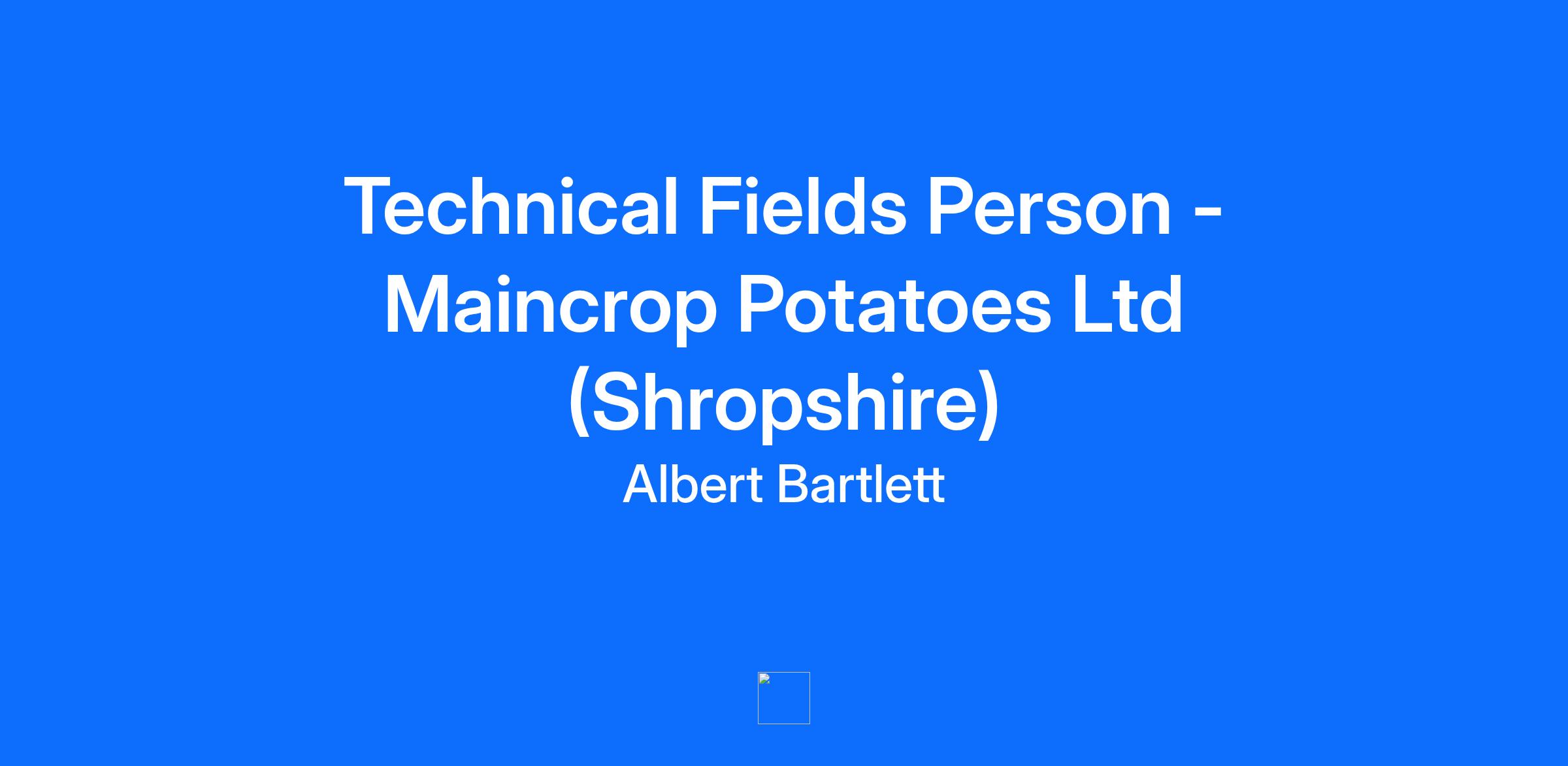 Technical Fields Person – Maincrop Potatoes Ltd (Shropshire) Location: Knockin, Shropshire, SY10 8HR Hours: Monday to Friday, 8:00am - 5:00pm. Salary: Dependent on experience Company Vehicle Provided Join Maincrop Potatoes Ltd – part of the Albert Bartlett family Maincrop Potatoes is a key supplier to every sector of the potato industry, dedicated to growing and delivering the highest quality potatoes to customers across the UK and beyond. With strong partnerships and a commitment to excellence, we pride ourselves on innovation, sustainability, and supporting our growers. We are looking for a proactive and detail-oriented Technical Fields Person to join our team, supporting the quality and logistics of our Maincrop Potato operations. This is a varied role that combines fieldwork, grower liaison, and administrative tasks, offering excellent development opportunities including working towards a BASIS and FACTS qualification. Key Responsibilities Crop Sampling: Collect samples from fields and stores to produce accurate QC results for the team. Grower Liaison: Communicate with growers regarding upcoming loading plans. Record Management: Collate and maintain accurate crop records. Office Support: Field incoming calls when in the office. Cross-Functional Work: Occasionally assist other parts of our group, including suppliers and partners. Storage Management: Support with storage and store management activities. Logistics Coordination: Liaise with hauliers and customers to book loads into factories. What We Offer Company vehicle for work-related travel Competitive salary based on experience Opportunity to work towards BASIS and FACTS qualification A dynamic role within a leading agricultural business Strong organisational and communication skills Ability to work independently and as part of a team Interest in agriculture and crop management Full UK driving licence Pension Plans Life Assurance Leave Package Training & Development Employee Assistance Programme - Counselling Free Parking 31 days of annual leave (inclusive of statutory holidays) Free parking Flexible payment options Life Assurance Access to Free Wellbeing Services (inc. counselling and financial advice) Retailer Discount Scheme Cycle to Work Scheme Wellbeing & Engagement Events throughout the year Long Service Awards Employee of the Month & On the Spot Awards Discounted Products