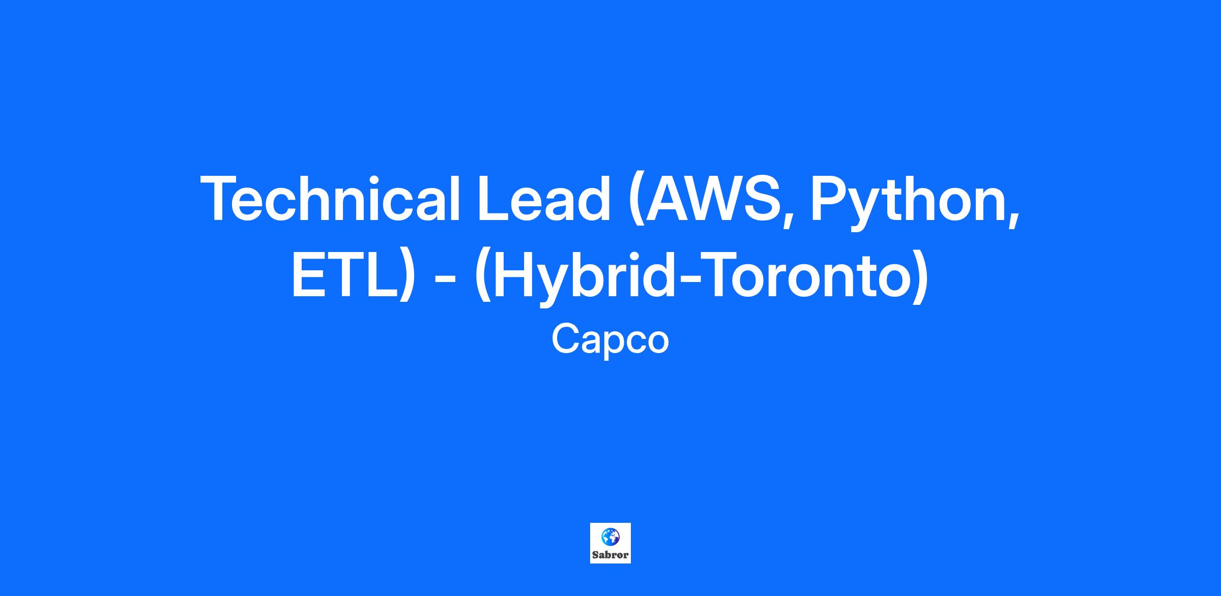 Technical Lead (AWS, Python, ETL) - (Hybrid-Toronto)