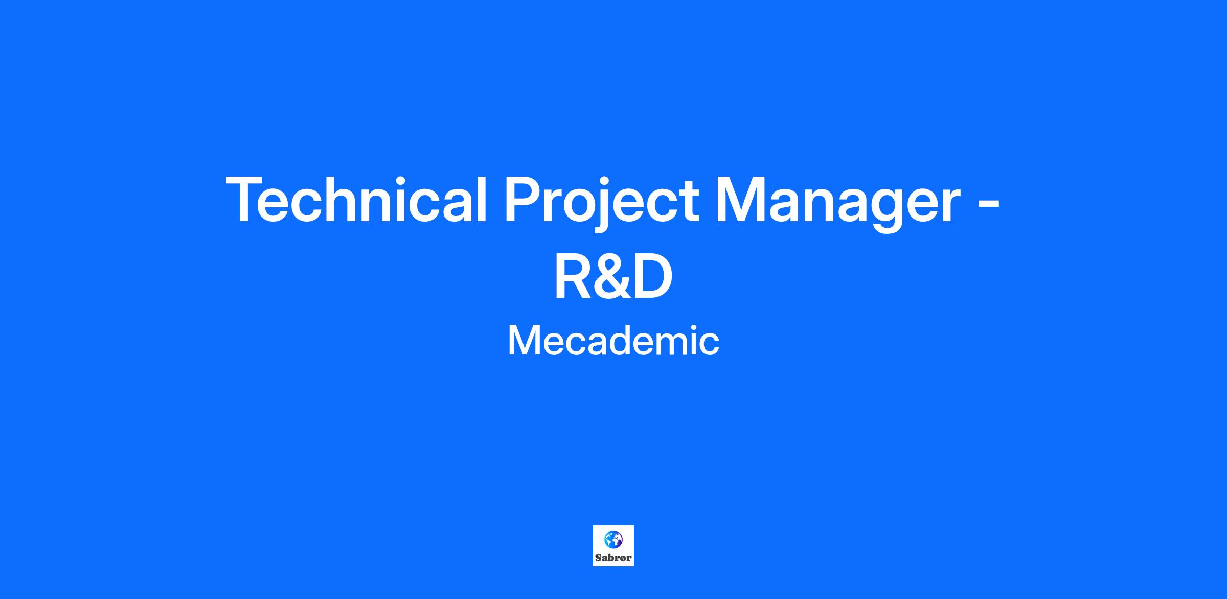 Technical Project Manager - R&D
