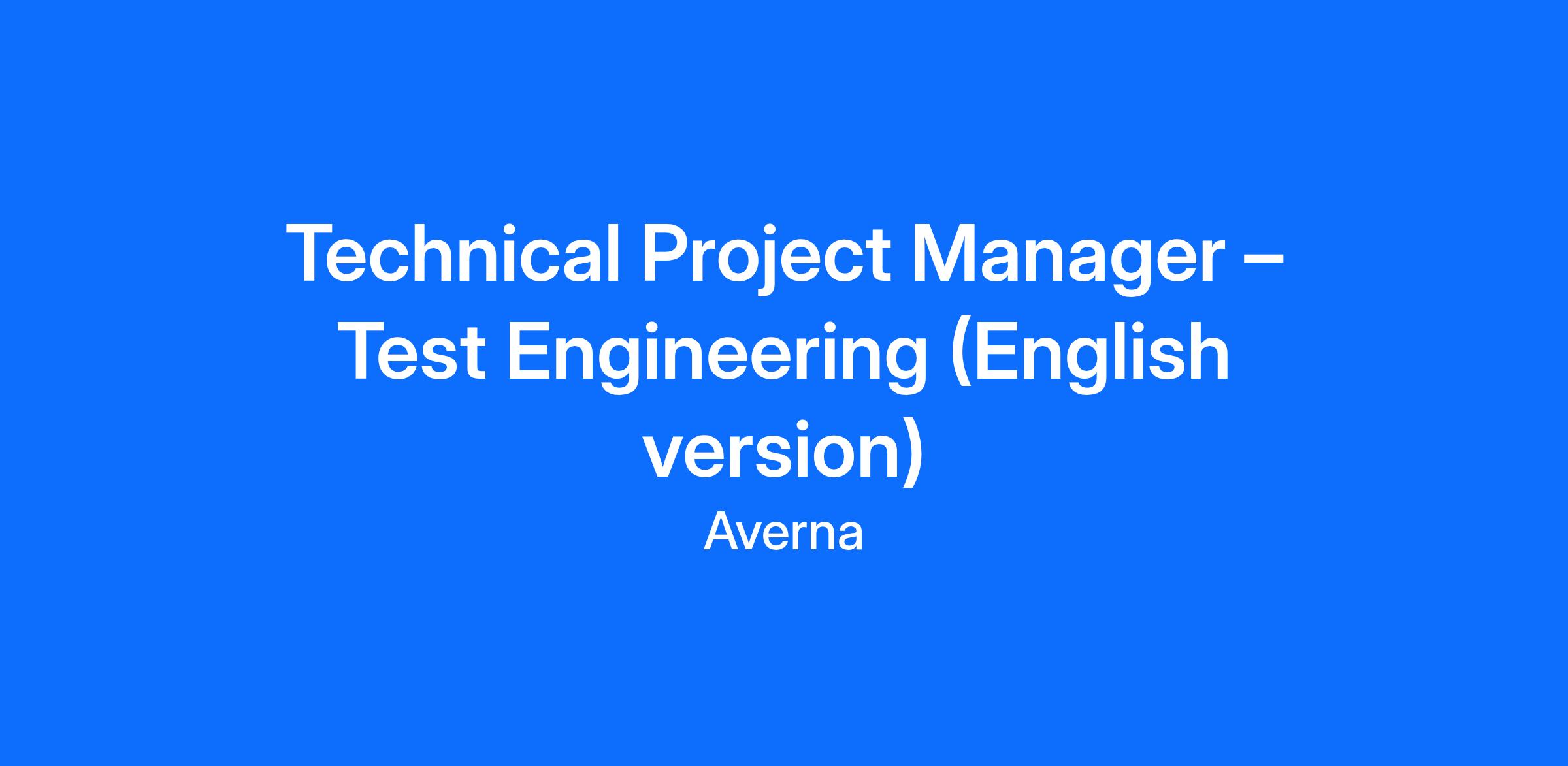 Technical Project Manager – Test Engineering