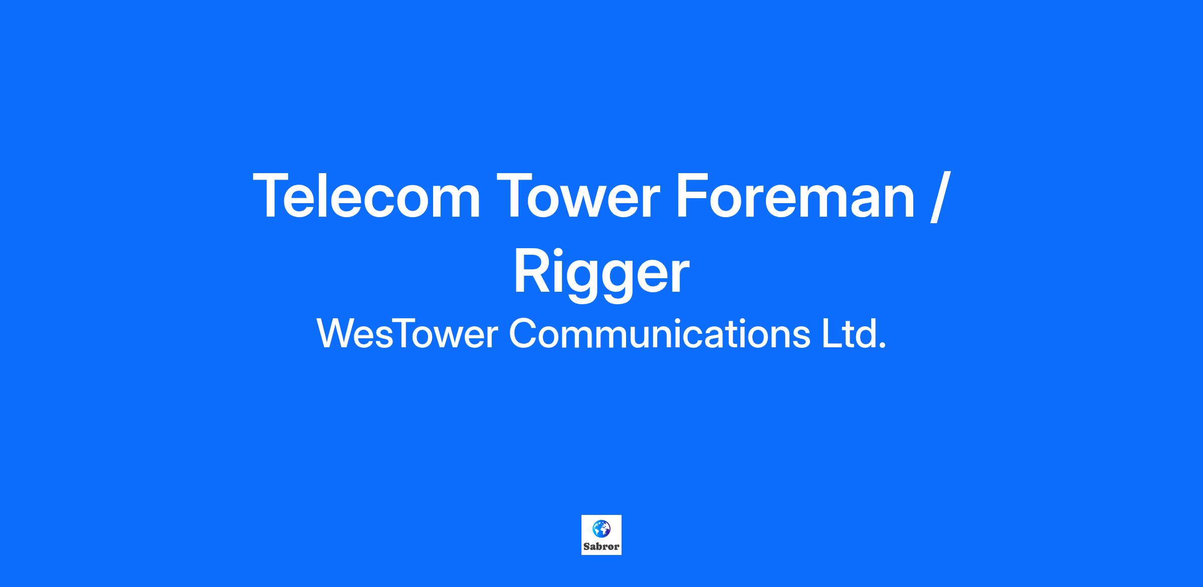 Are you ready to take your career to new heights? Join our growing team at WesTower Communications Ltd. as a Telecom Foreman! Previous experience with Wireless/ Cell Site installation Previous experience leading and managing a crew Comfortable working at heights Good physical condition Willing to work outdoors Willing to travel Mechanically inclined Safety minded Strong communication skills – verbal and written Ability to interpret engineered drawings Knowledge of RF and DC drawings Understand and have good troubleshooting skills to locate the transmission faults Valid Canadian driver’s license is required Must be authorized to work in Canada Maintain a professional working relationship with co-workers and clients Must be reliable, trustworthy and have a positive attitude! Benefits Competitive wages Full benefits Paid Out Living Allowances Paid Holidays RRSP Matching Paid Safety Incentives Paid Personal Days Paid Safety Training Paid Travel Clothing/Boot Allowance Real-time Bonuses National opportunities $25-43 per hour (wage is dependent on experience) Bring your crew with you and receive a signing bonus!
