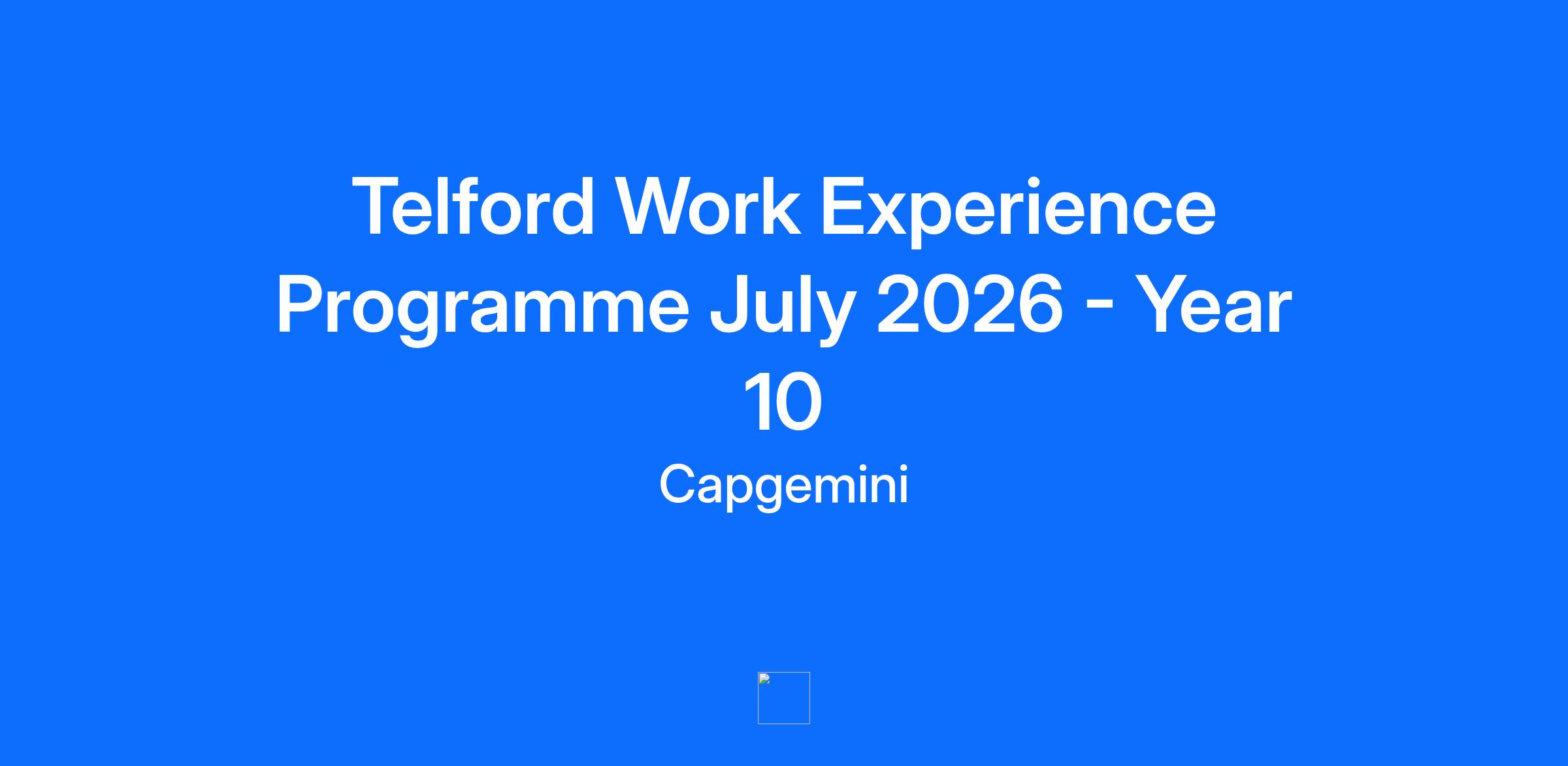 Application Information This programme is designed for Year 10 and Year 11 students currently studying at school. The placement runs 9:00 AM – 4:00 PM each day, you will be expected to attend our Telford office for the full 5 days of the placement. We are offering placements on the following dates: Monday 6 July – Friday 10 JulyMonday 13 July – Friday 17 July When you apply You will be asked to upload a resume/CV. Instead, please upload a Word document answering the question “Why are you interested in Work Experience at Capgemini?”Your response should be a minimum of 100 words and a maximum of 300 words. Interview process Our application process includes an interview, which will be held virtually via Microsoft Teams for successful applicants during late January and early February. Important Applications will close on Friday 23 January 2026. Job Description About The Programme Join Capgemini for our Year 10 work experience placement and explore careers in Business and Technology. Across your placement you’ll meet real project teams, learn how large digital services are delivered during our fun business challenge, and build skills you can take back to school and beyond. What You Will Do Work within a team to experience real life project delivery and work with a real client Take part in team activities and problem‑solving challenges Gain a real insight into how projects are operated at Capgemini Introduction to roles across Capgemini such as, User Research, Software Engineer, Software Tester, Business Operations, Finance and Marketing Hear from our experts about pathways into apprenticeships and graduate programmes