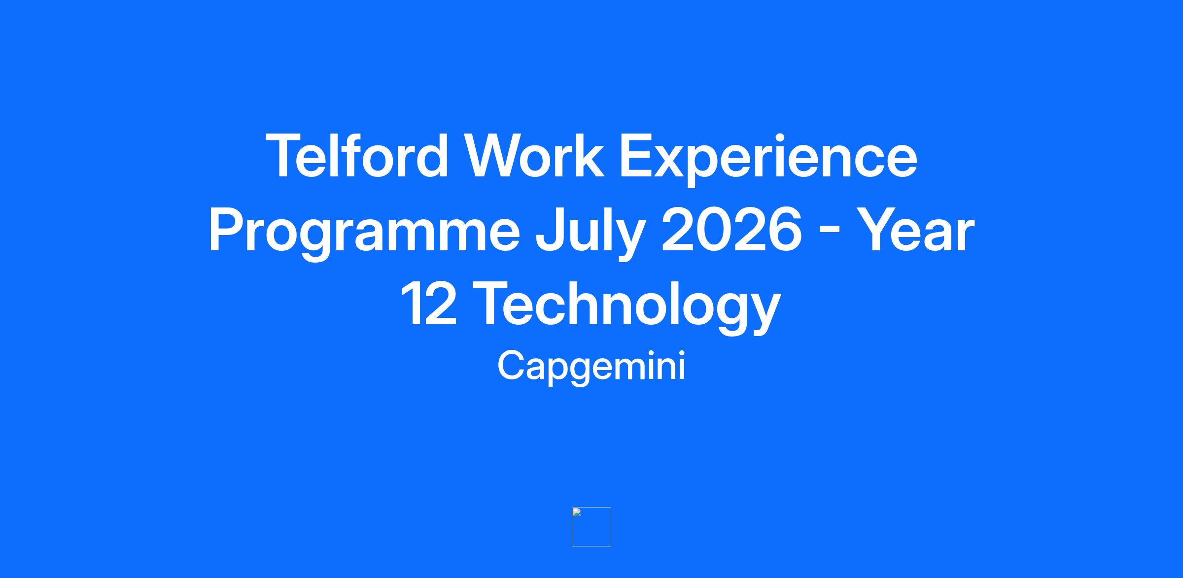 Application Information This programme is created for Year 12 students currently studying at school or college. The placement runs 9:00 AM – 4:00 PM each day, you will be expected to attend our Telford office for the full 5 days of the placement. We are offering placements on the following dates: Monday 6 July – Friday 10 JulyMonday 13 July – Friday 17 July When you apply You will be asked to upload a resume/CV. Instead, please upload a Word document answering the question “Why are you interested in Work Experience at Capgemini?”Your response should be a minimum of 100 words and a maximum of 300 words. Interview process Our application process includes an interview, which will be held virtually via Microsoft Teams for successful applicants during late January and early February. Important Information This work experience requires BPSS Security Clearance, you will be required to pass BPSS Security Clearance if you are successful in this recruitment process, which is a condition of undertaking the role. You may as part of the process need to visit the Telford office with documentation. To meet the clearance requirements, you will need to; Be resident in the UK for the past 3 years Have the right to live and work in the UK Applications will close on Friday 23 January 2026. Job Description About The Programme Join Capgemini for our Year 12 work experience placement and step into the world of technology. During your placement you’ll collaborate with real project teams, discover how large scale digital services are designed, delivered and supported for our global clients. Alongside developing your technical skills, you will be building capabilities that can support and shape your future career. Please note that this is a hands on technical placement where you'll start building programming skills by working on technical solutions throughout the week. What You Will Do Work as part of a team to experience real life technical solutions and project delivery Tackle team challenges and solve real technical problems Gain insight into how cutting edge technologies are applied within industry Learn to build systems using industry standard tools and platforms such as AWS, Java, Pentaho, PowerBI, Scala Gain an introduction to software engineering within Capgemini Hear from our experts about career pathways into apprenticeships and graduate programmes