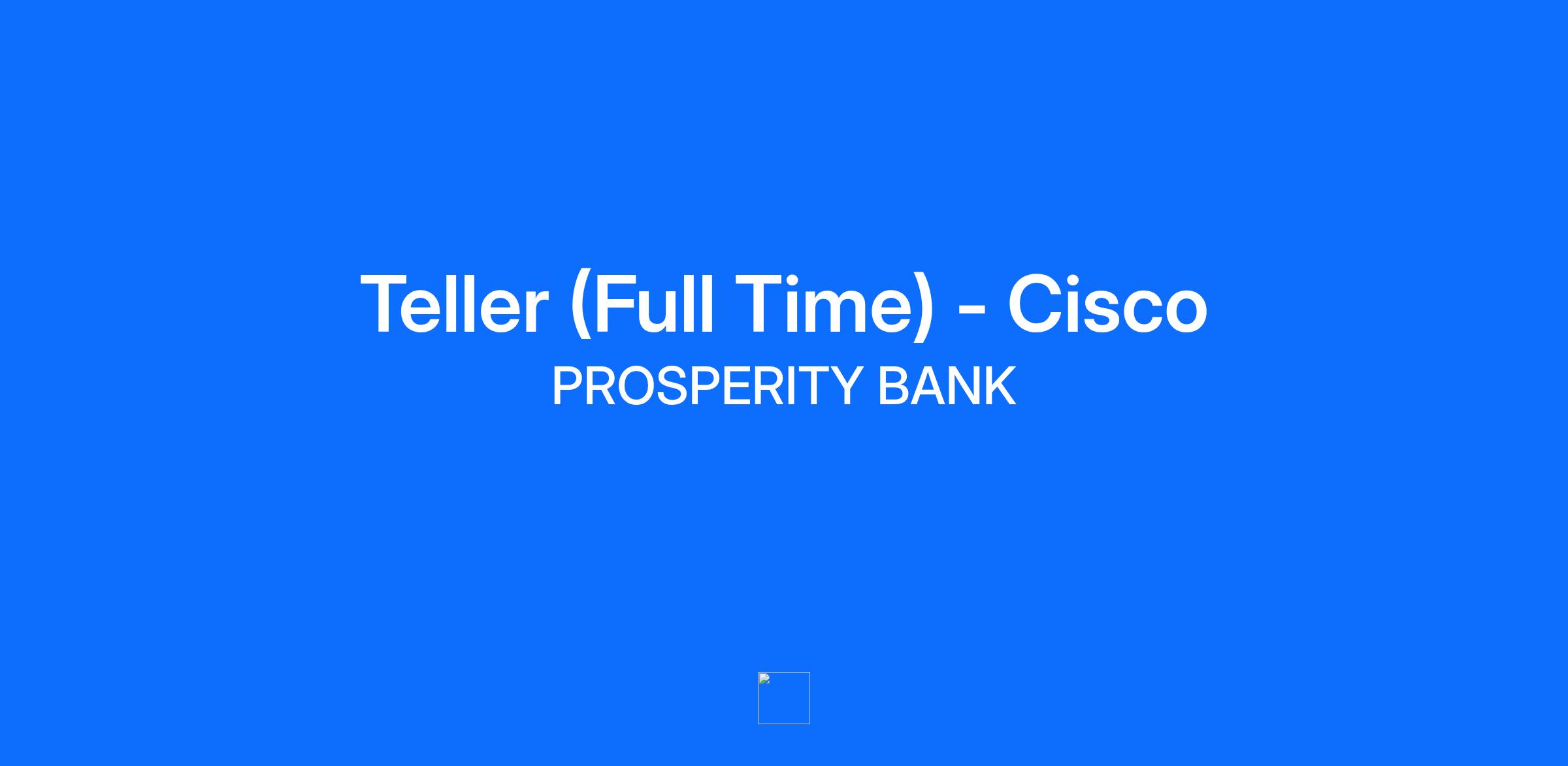 External Applicants: Please apply through Prosperity Bank's Career Center at https://www.prosperitybankusa.com/Careers [https://nam02.safelinks.protection.outlook.com/?url=https%3A%2F%2Fwww.prosperitybankusa.com%2FCareers&data=05%7C02%7Calejandra.flores%40prosperitybankusa.com%7C4351c6288a4f46ccbc9e08dcd40d9146%7C00eda10cf32f45b88e91257da01a8f7c%7C0%7C0%7C638618401958075339%7CUnknown%7CTWFpbGZsb3d8eyJWIjoiMC4wLjAwMDAiLCJQIjoiV2luMzIiLCJBTiI6Ik1haWwiLCJXVCI6Mn0%3D%7C0%7C%7C%7C&sdata=JfKwkOP9QTuGjbZ8LvC6BVGQJzgytNf8BFud9nEUt78%3D&reserved=0]. Applying through any other source may prevent Prosperity from receiving your application. Internal Applicants: If you are a current associate of Prosperity Bank, please apply through the internal Talent - Career Center in ADP. Prosperity Bank is an Equal Opportunity Employer. POSITION PURPOSE Perform numerous functions including processing deposits, withdrawals, posting to general ledger accounts, cashing negotiable items, processing loan payments, savings bonds, and cashier’s checks while promoting the bank’s products and services and providing excellent customer service. ESSENTIAL FUNCTIONS AND BASIC DUTIES 1. Assumes responsibility for the efficient, effective, and accurate performance of Teller functions. * Represents the bank in a courteous and professional manner. * Receives and processes deposits. * Receives and processes loan payments. * Cashes checks and other negotiable instruments for clients. * Examines documents for endorsements and negotiability. * Processes transfers between accounts. * Sells traveler’s checks, official checks, and money orders. * Processes credit card cash advances. * Verifies and balances cash daily. * Detects and resolves discrepancies promptly. * Offers other Bank products to meet customer needs and strengthen the relationship. * Has no more than one proof error within a 30-day period. * Follow Teller procedures consistently and adheres to compliance requirements. * Other duties as assigned. 2. Assumes responsibility for establishing and maintaining effective, professional business relations with clients. * Ensures that client requests and inquiries are promptly resolved. * Operates online teller terminal. * Maintains privacy of customer information. * Ensures that the Bank’s quality reputation is maintained and projected. 3. Assumes responsibility for establishing and maintaining effective coordination and working relationships with area personnel and with management. * Assists area personnel as required. * Assists with training or orientation as needed. * Keeps supervisor informed of area activities and of any problems or concerns. * Completes required reports and records accurately and promptly. * Attends meetings and training classes that may be held on weekdays, evenings, and/or Saturdays. 4. Assumes responsibility for related duties as required or assigned. * Performs night drop functions as assigned. * Performs related clerical duties as assigned. * Ensures that work areas are clean, secure, and well maintained. * Cross sells Bank products and services. PERFORMANCE MEASUREMENTS 1. Teller functions are efficiently, effectively, and accurately performed in accordance with established policies, standards, and security procedures. 2. Cash is balanced and any discrepancies promptly resolved. A balancing record that meets established standards is maintained. 3. Good business relations exist with clients. Client problems and inquiries are courteously and promptly resolved. 4. Good working relationships and coordination exist with area personnel and with management. Assistance is provided to other Tellers and staff as needed. Supervisors are appropriately informed of area activities. 5. Required reports and records are accurate, complete, and timely. 6. Consistently strives to develop new client relationships as well as strengthen existing client relationships by identifying opportunities to sell Bank products and services. 7. The Bank’s professional reputation is maintained and conveyed. QUALIFICATIONS Education/Certification: High school graduate or equivalent. Required Knowledge: Understanding of Bank operations preferred. Experience Required: At least one year of related experience/cash handling required. Previous Teller experience preferred. Skills/Abilities: Good communication skills. Professional appearance, dress, and attitude. Good math skills. Good typing skills. Ability to operate related computer applications and business equipment including adding machine, typewriter, copy machine, coin and money counting machines, and telephone. Hours: Monday - Friday: 8:00AM - 5:00 PM. 40 hours per week