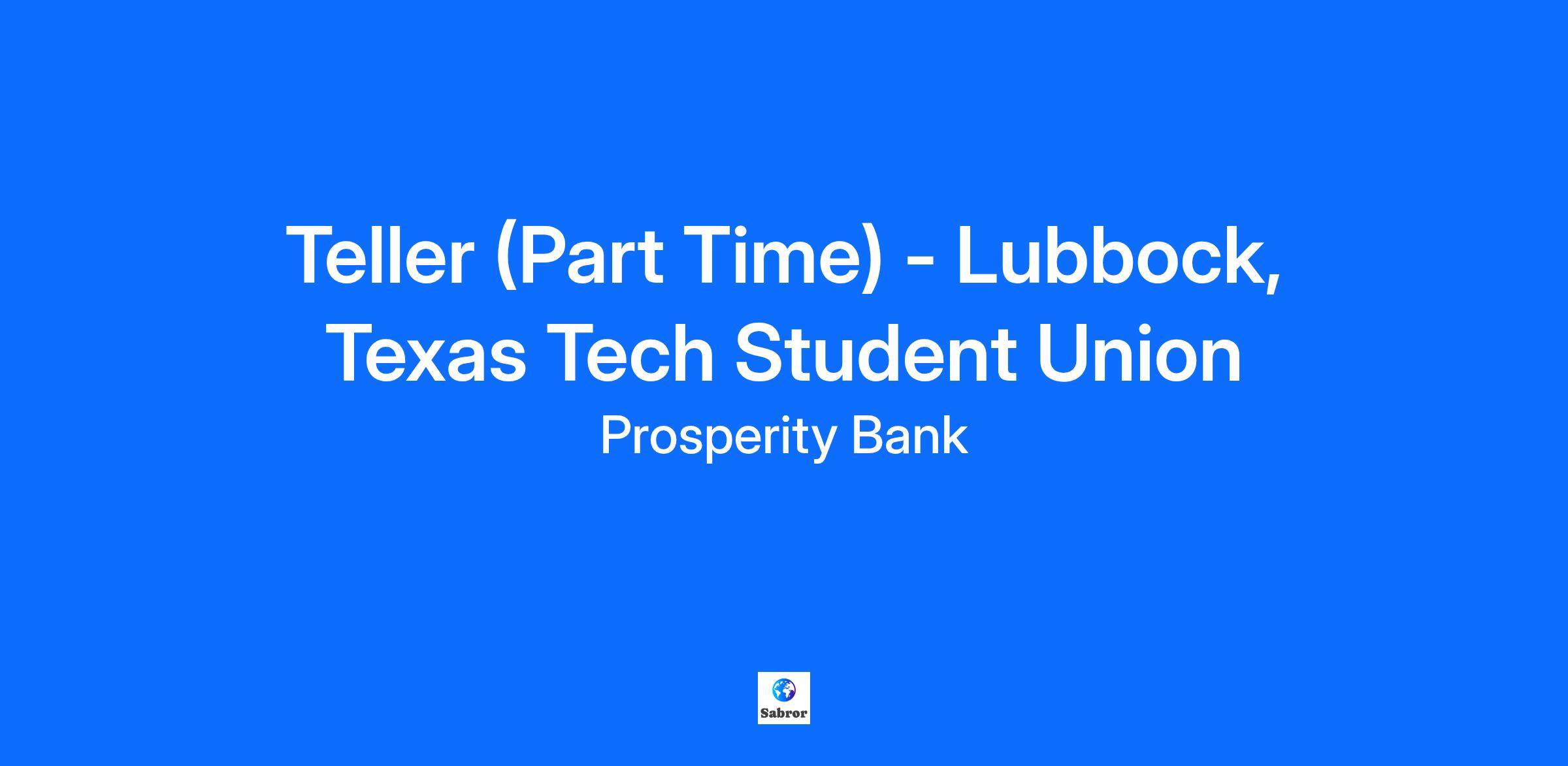 Teller (Part Time) - Lubbock, Texas Tech Student Union