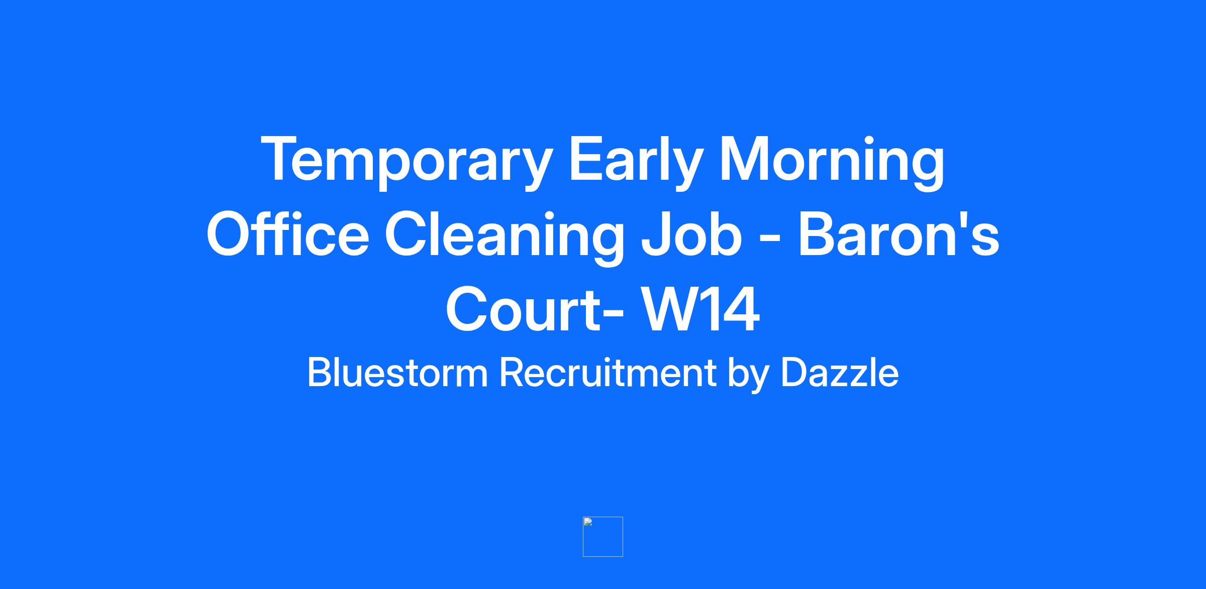 December 2025 Cover Cleaning Operative Needed – W14 (Baron’s Court Station) 🚨 We’re looking for a reliable and experienced Cover Cleaning Operative to join our client site from 16th–31st December. Onboarding: 15th December. Location: W14 – near Baron’s Court Station Shifts: Mon–Sat: 5:30 AM – 8:30 AM Fri: 5:30 AM – 9:15 AM Rate: £13.50/hour Requirements: • Deep cleaning experience • Attention to detail • Good English • COSHH knowledge About the role: This is a place for studying and relaxing with offices, open-plan rooms, library, studios, changing rooms, hallways, and staircases. Daily tasks include wiping surfaces, disinfecting touchpoints, vacuuming, and keeping all areas clean. Weekly and bi-weekly duties cover more detailed cleaning like under desks and furniture. If you’re available, apply now!