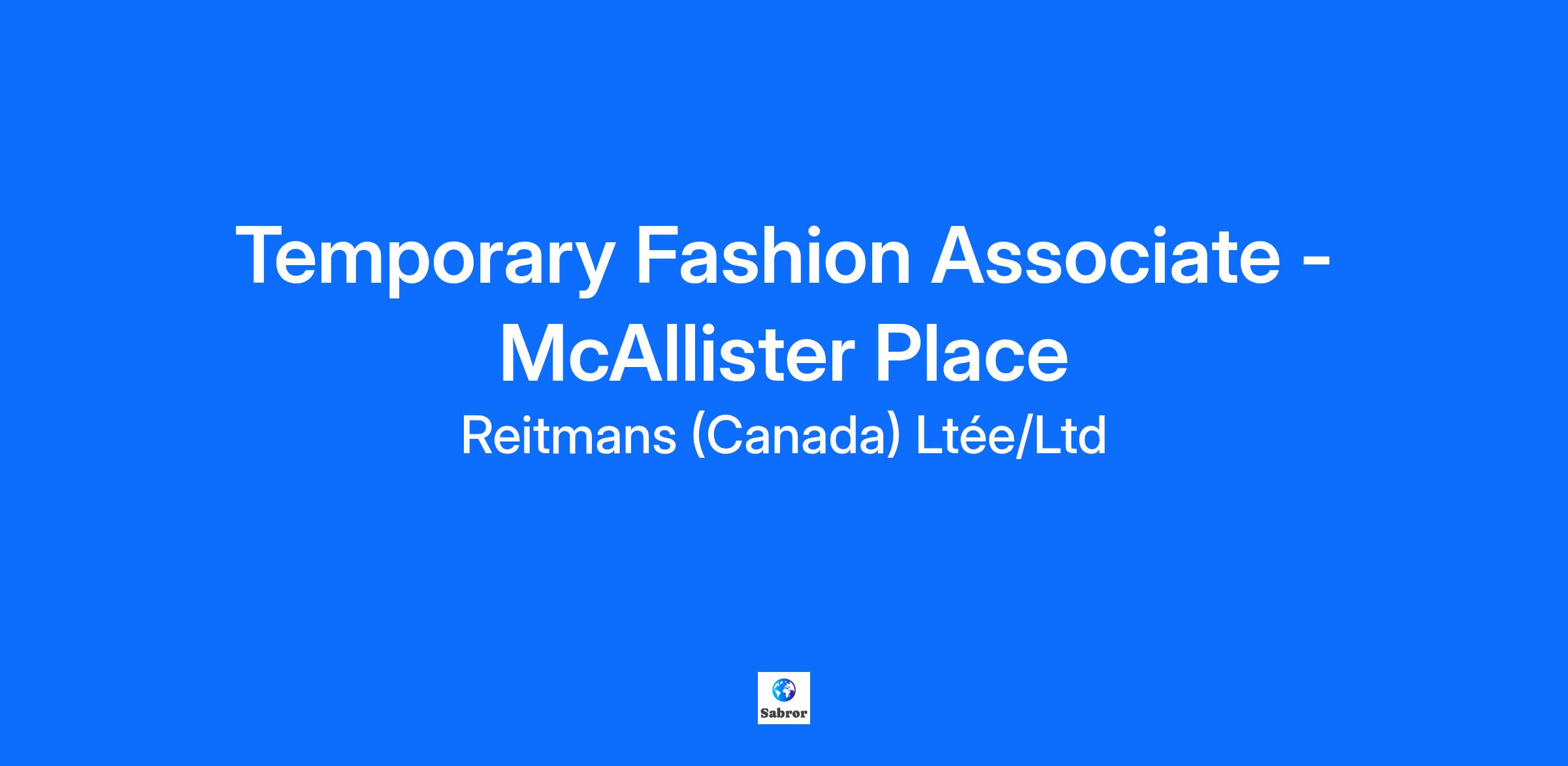 Temporary Fashion Associate - McAllister Place