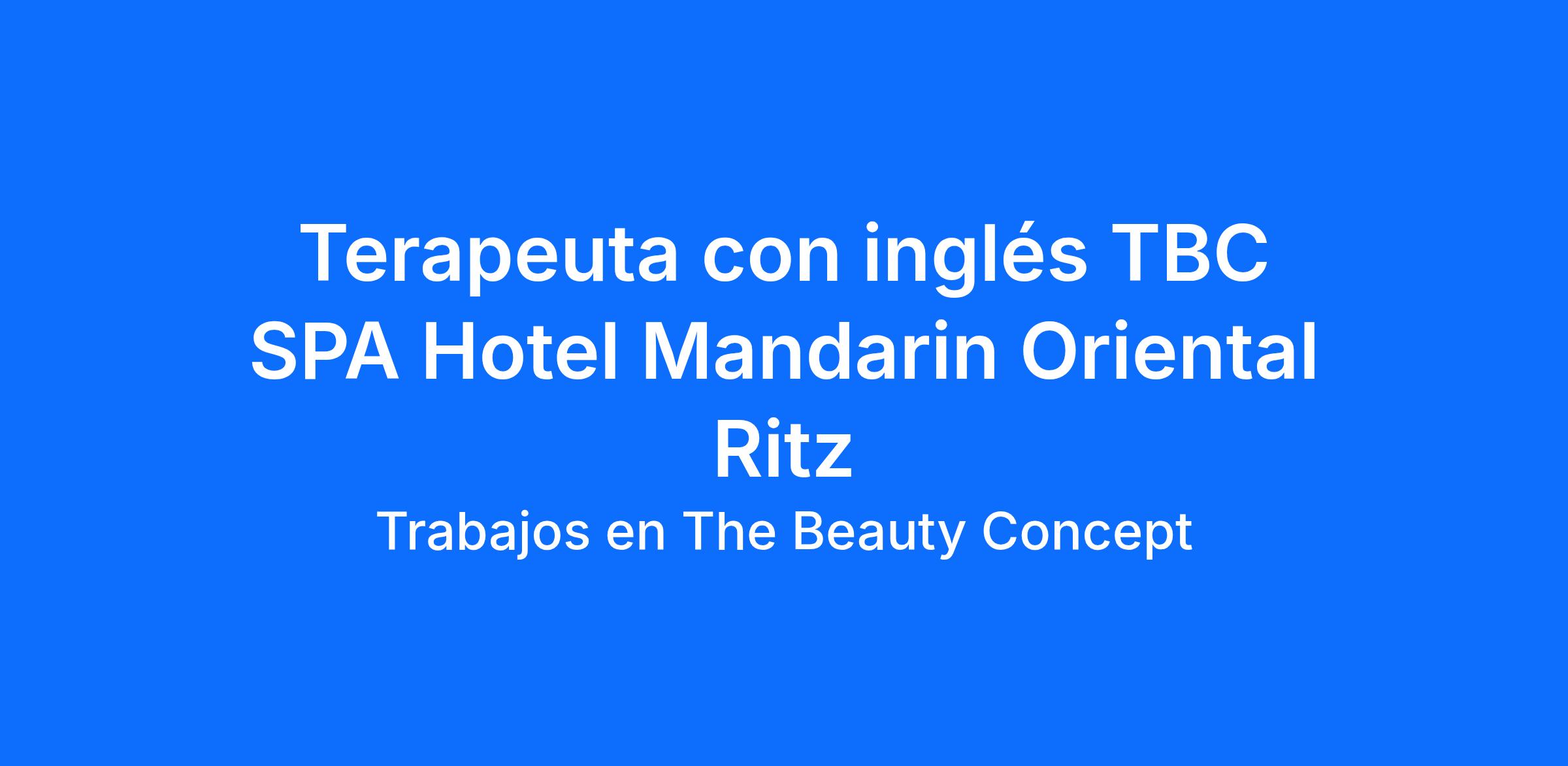 ¡Buscamos ampliar el equipo de terapeutas con inglés en nuestro spa TBC, dentro del emblemático Hotel Mandarín Oriental Ritz!