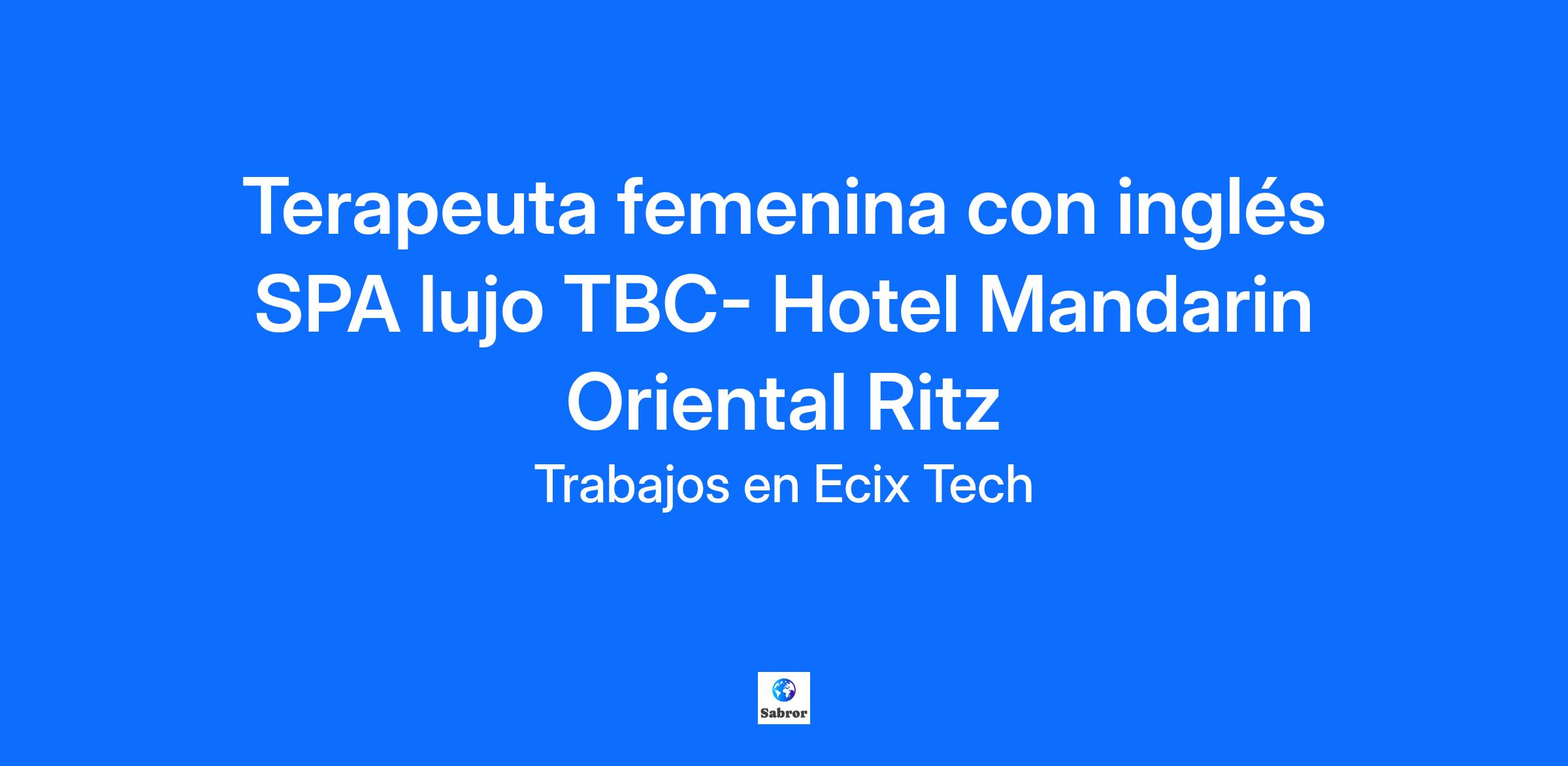 ¡Buscamos ampliar el equipo de terapeutas con inglés en nuestro spa TBC, dentro del emblemático Hotel Mandarín Oriental Ritz!