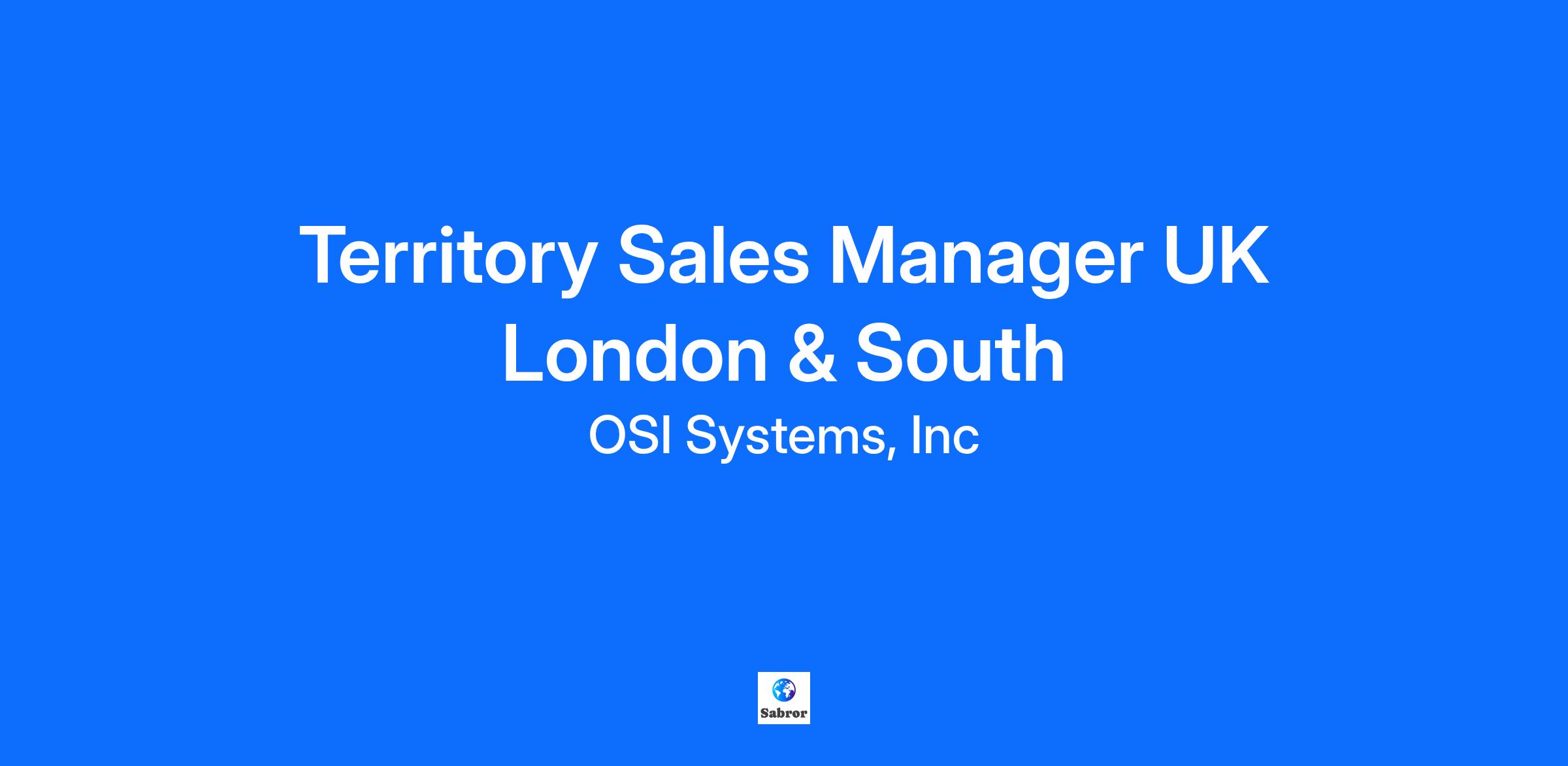 Territory Sales Manager UK London & South
