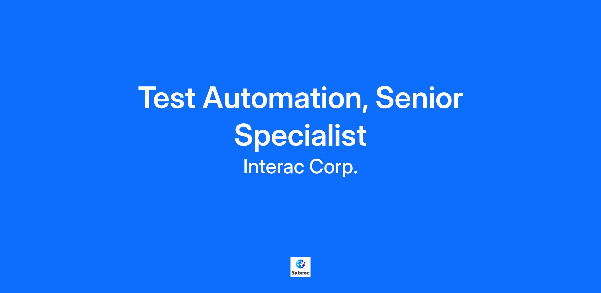 Test Automation, Senior Specialist At Interac, we design and deliver products and solutions that give Canadians control over their money so they can get more out of life. But that’s not all. Whether we’re leading real-time money movement, driving innovative commerce solutions like open payments for transit systems, or making advancements in new areas like verification and open banking, we are playing a key role in shaping the future of the digital economy in Canada. Want to make a lasting impact amongst a community of creative thinkers, problem solvers, technical gurus and high-performance application developers? We want to hear from you. You'll be responsible for: Performing the automation testing functions & support for Interac Corp. products and services, with a focus on Online related projects. Reviewing functional and design specifications to ensure full understanding of what we build and how to test it. Designing and documenting the Integration Automation Framework / document Integration Automation best practices with the goal of maximizing test coverage and minimizing test cycles time via automation but reducing automation maintenance efforts/costs. Evaluating all scripts and recommending changes as per the requirements. Enhancing the automation test strategy to incorporate microservices automation test strategy where it is relevant regarding Integration and end to end user process flow including all services dependencies and DB integration. Defining automation metrics and the process for collecting and validating these metrics, monitor efficiency of the automation activities of the Integration team. Developing NFR automation tests targeting interactions between different services and components, timeouts, retries should be designed per release as and when needed. You bring: A Computer Science Degree or equivalent work experience. 5+ years’ direct experience in software development with strong, hands-on experience in software automation testing, test case development, test execution, test results analysis, and test optimization. Experience in creating, maintaining, and executing automated test scripts for mobile applications. This position requires a deep understanding of mobile testing frameworks and technologies to ensure the delivery of high-quality mobile apps (iOS and Android Devices). Demonstrated experience in NUnit or JUnit. Experience working within a formal CI/CD pipeline. Strong knowledge of C#, JavaScript. Knowledge of Selenium WebDriver. API testing using POST man or similar. Knowledge of web applications architecture, APIs, SQL and NoSQL databases. Experience with load testing using JMeter or similar. Knowledge and experience with Git/Stash. Knowledge and experience with Jenkins, Bamboo. Knowledge and experience of micro-services architecture regarding integration and functional automation tests. Agile team and methodology experience; Kanban experience is desirable. Eligibility to work for Interac Corp. in Canada in a full-time capacity. Interac requires employees to complete a background check that is completed by one of our service providers. We use this service to complete the following checks: Canadian criminal record check; Public safety verification; Canadian ID cross-check; 5-year employment verification; Education verification; and If applicable, Credit Inquiry and Social Media Check How we work We know that exceptional people have great ideas and are passionate about their work. Our culture encourages excellence and actively rewards contributions with: Connection: You’re surrounded by talented people every day who are driven by their passion of a common goal. Core Values: They define us. Living them helps us be the best at what we do. Compensation & Benefits: Pay is driven by individual and corporate performance and we provide a multitude of benefits and perks. Education: To ensure you are the best at what you do we invest in you Please be aware of certain individuals fraudulently using Interac Corp.’s name and logo to offer fictitious employment opportunities. Interac Corp. will never ask, solicit, nor accept any monies in exchange for employment opportunities. Any such offers of employment are fraudulent and invalid, and you are strongly advised to exercise great caution and disregard such offers and invitations. Please note that under no circumstances shall Interac Corp. be held liable or responsible for any claims, losses, damages, expenses, or other inconveniences resulting from or in any way connected to the actions of individuals performing such fraud. Further, such fraudulent communication shall not be treated as any kind of offer or representation by Interac Corp. or its subsidiaries and affiliates. About Interac Corp. Interac empowers Canadians to transact digitally with confidence by providing payment and value exchange services. In helping to develop the future of money and data in Canada, security is the core of everything we do. We help keep Canadian customers safe and secure when transacting. With nearly 300 financial institutions connected to our network, Canadians choose Interac products over 20 million times a day on average to exchange money. Interac champions workplace culture, community, and corporate citizenship. We are proud to be one of Canada’s leading and most trusted financial brands. For more information, visit In The Know.