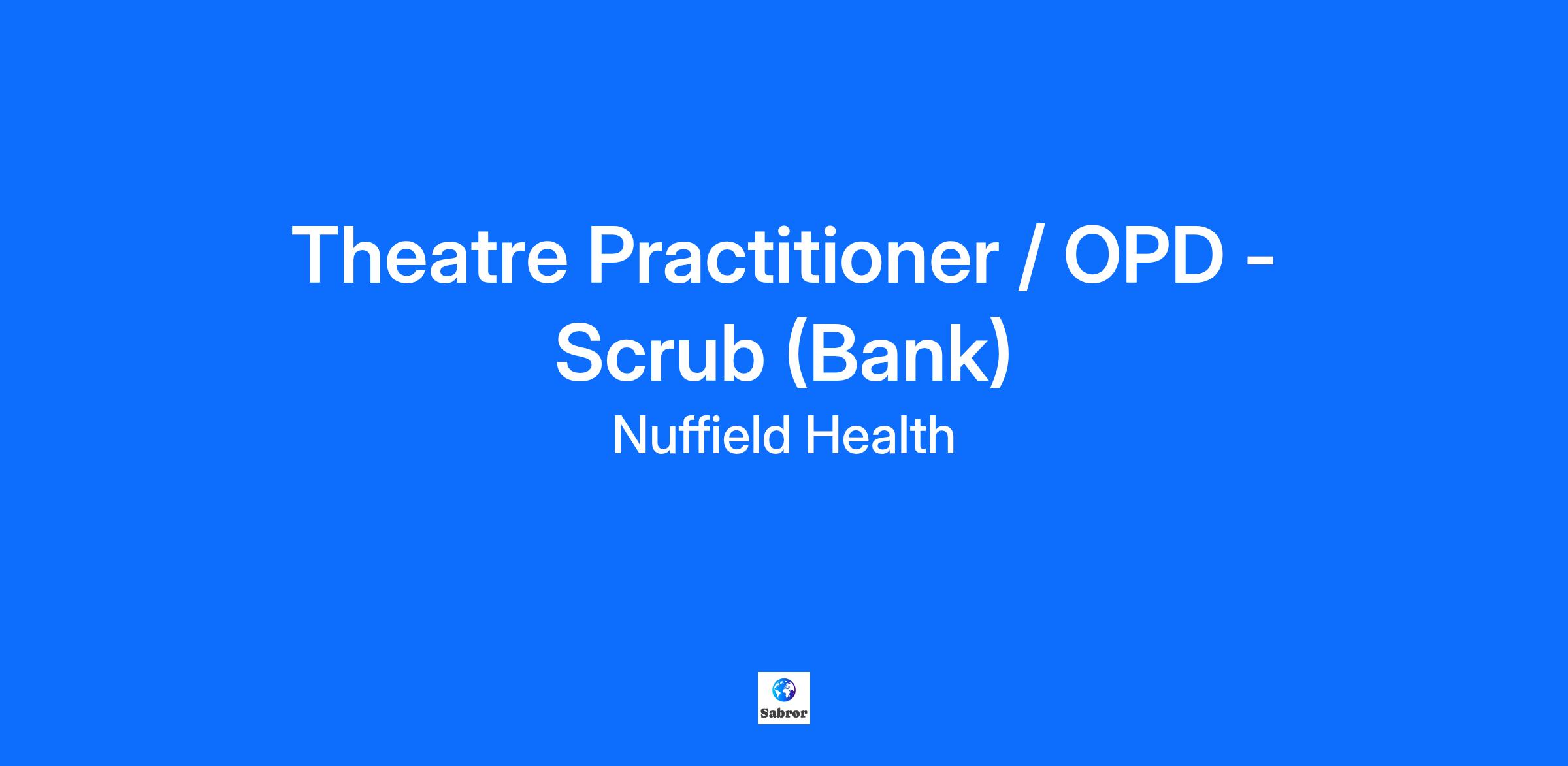 Theatre Practitioner/OPD - Scrub (Bank) Woking Hospital | Theatre | Bank Contract - Ad hoc Up to £27 per hour Nuffield Health is the UK’s largest Healthcare Charity. From our innovative healthcare and leisure facilities to our community access programmes, we’re committed to building a healthier nation. Inside our award-winning hospitals, this starts with commitment to quality and the highest standards of patient care. It starts with you. As a Scrub Practitioner/ Theatre Practitioner (ODP) at our hospital, you’ll be focused, detail-oriented empathetic with great communication skills. You’re registered with the appropriate governing body, and you bring the qualifications and experience relevant to your registration, including NMC or HCPC. With post-registration experience in Scrub roles within a Theatre environment, you’re a team player with a passion for exceptional patient care. As a Scrub Practitioner or Theatre Practitioner (ODP), you will: Work in a multi disaplinary team covering a varied patient caseload Use state-of-the-art technology, equipment and facilities Supervise, support and develop junior members of the team Provide high-quality perioperative care in a multidisciplinary team setting Create high-quality care and patient experiences that are clinically effective and evidence based Have ample opportunities for continuous growth and personal development, which can include Surgical First Assist training. Helping you feel good. We want you to love coming to work, feeling healthy, happy and valued. That’s why we’ve developed a benefits package with you in mind. From Holiday in line with the Working Time Directive, Access to our Pension Scheme and discounted gym membership at £25.00 a month. Working on the bank means you are not contracted to a set number of hours per week but instead work on an ad-hoc basis to suit the needs of the business and your availability. Join Nuffield Health and create the future you want, today. If you like what you see, why not start your application now? We consider applications as we receive them and reserve the right to close adverts early (for example, where we have received an unprecedented high volume of applications). So, it’s a good idea to apply right away to ensure you’re considered for this role. It starts with you. Nuffield Health, is the UK’s largest healthcare charity. For over 60 years, we’ve been working to make the UK fitter, healthier, happier and stronger. All for the public benefit. We do this through our family of 31 award-winning hospitals, 113 fitness and wellbeing centres, healthcare clinics and over a 100 workplace wellbeing services. As a charity, we invest all our income back in to our services, in to pioneering improvements in care, and most importantly, we invest in to our flagship programmes, which have been developed to help people who could normally afford or access our services. Its all part of our mission to give everyone the care they need and to build a healthier nation.