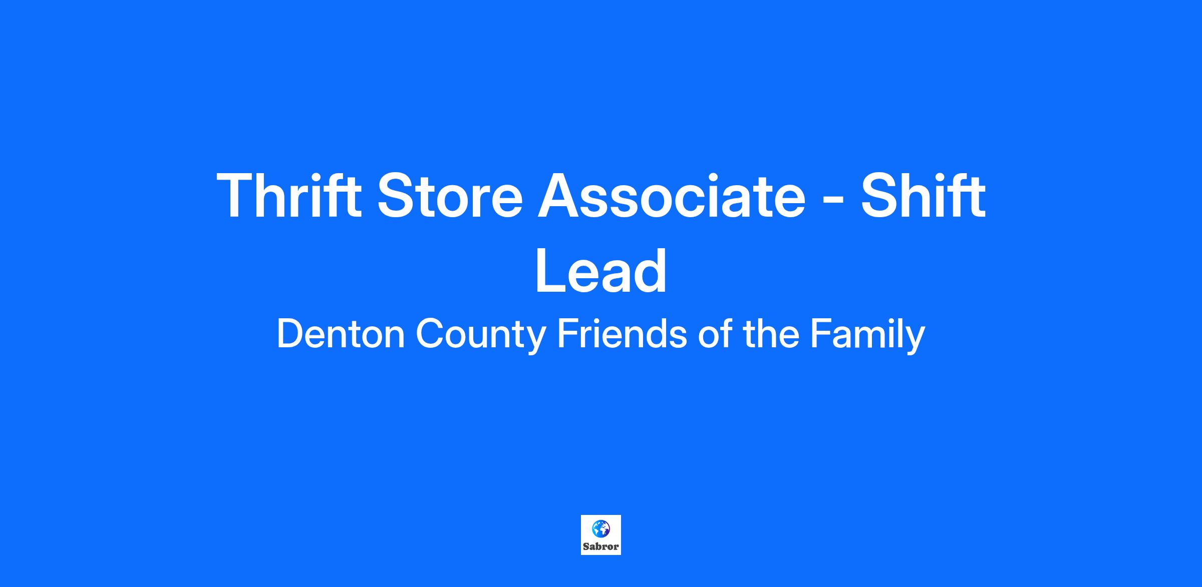 Reports to: Thrift Store Manager