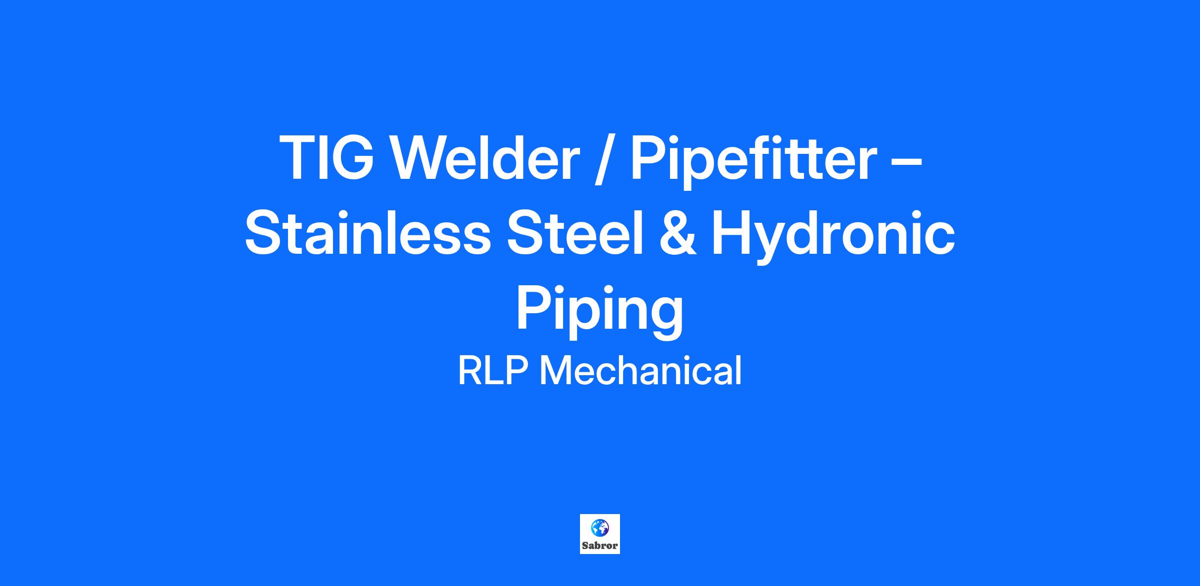 Experienced TIG Welder / Pipefitter – Stainless Steel & Hydronic Piping