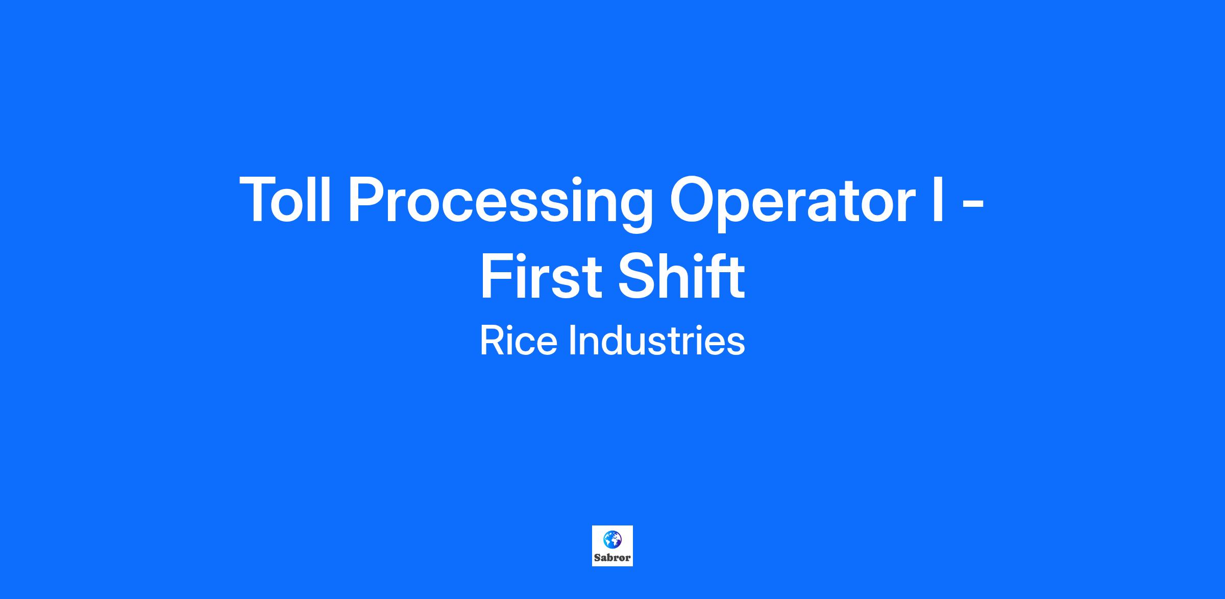 Work Environment: Toll processing requires working inside and outside all year round. The environment is industrial and can be loud at times.