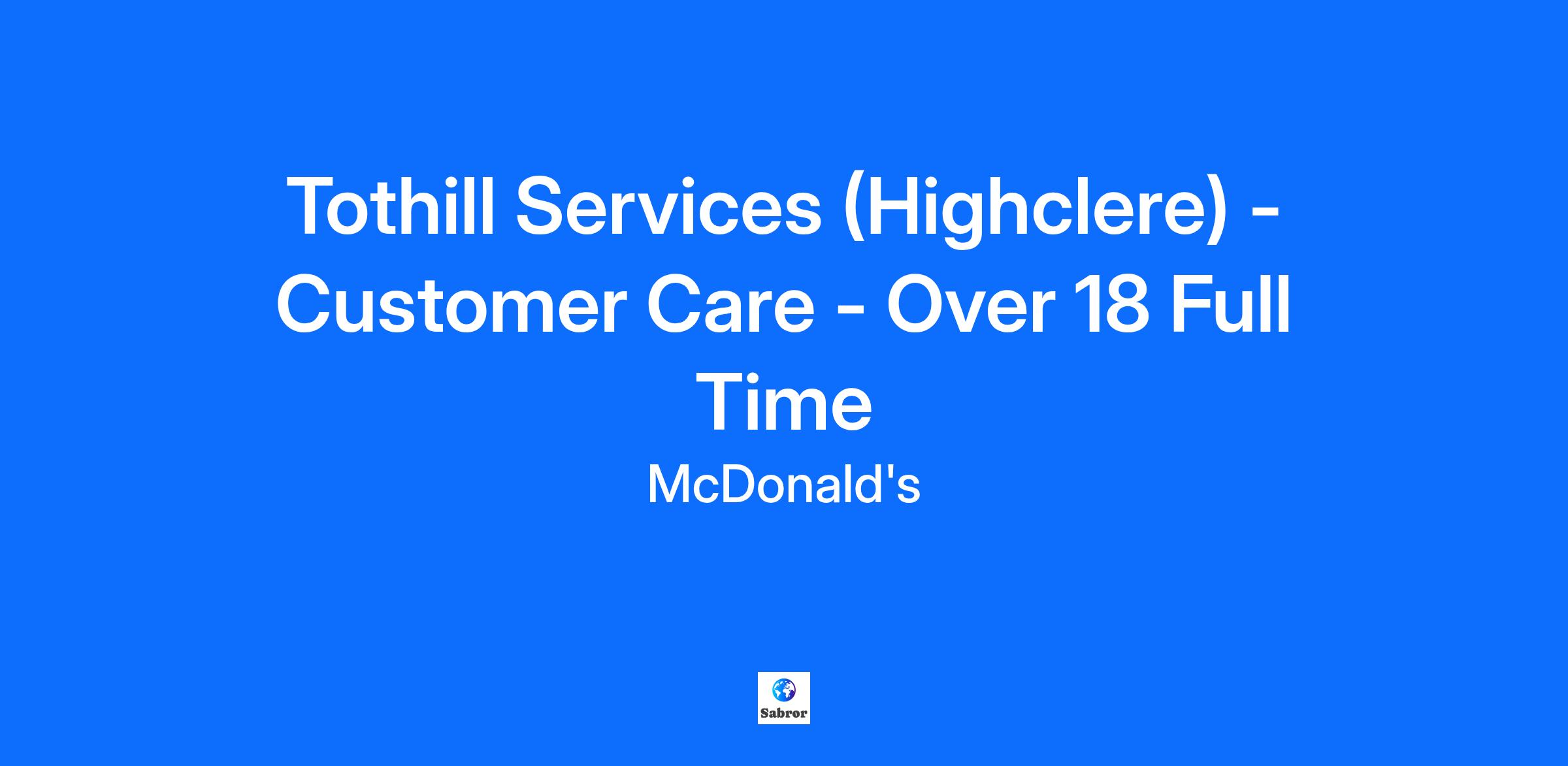 Tothill Services (Highclere) - Customer Care - Over 18 Full Time