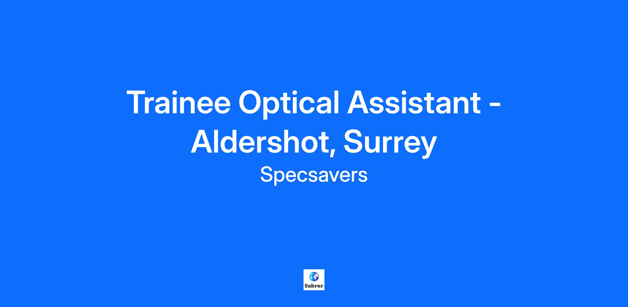 So, you’re a proactive people person, passionate about retail and offering the best customer service? Sounds like you’d be a great fit here. If you’ve ever considered a career in optics, this Trainee Optical Assistant role could be perfect for you. As a Trainee Optical Assistant, you don’t need to have previous experience, you just need to be prepared to create an outstanding store environment for both our customers and our team, making sure every patient receives the best care in our stores. Our Store Located in Aldershot, our busy store is a hub of activity. Our Team Our store is home to a fantastic team of dedicated individuals who are eager to meet you. What’s on offer? As well as all the support you need and great training and development opportunities, we have a whole load of benefits on offer for you to enjoy. These include: Up to £12.41 per hour (depending on age) Up to 37.5 hours per week (with 1 weekend day) We will auto-enroll you into the pension scheme with an employer contribution when you contribute too Specsavers Perks - a portal to a world of great everyday discounts and savings WeCare - our employee support service to help you and your immediate family when you need it most Complimentary subscription to the Headspace app Eyecare and hearcare discounts for you and your family Enjoy an additional paid day off on your birthday to celebrate you! Enhanced family leave and company sick pay What we’re looking for? Some of the responsibilities of this role include: Welcoming customers into store Booking in eye tests Pre-screening patients Providing style advice Measuring frames Taking phone call Find out more If you are comfortable with the responsibilities we’re looking for and are excited by this opportunity, we’re excited to hear from you. Got what we’re looking for? Apply Now! Just to let you know, you may be invited to complete a few pre-recorded questions as part of your application for this role. Nothing to worry about, we think it’ll give you a great chance to showcase your personality and passion for Specsavers.