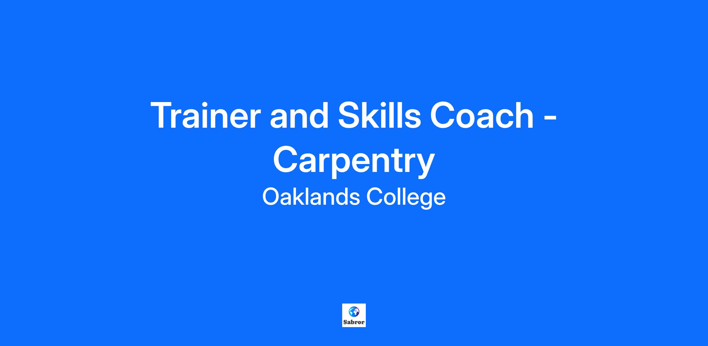 Trainer & Skills Coach – Carpentry Oaklands College Oaklands College is looking for an experienced carpenter who’s passionate about the trade and ready to pass their skills on to the next generation. As our Trainer & Skills Coach – Carpentry, you’ll train, coach and support apprentices, helping them build the skills, knowledge and confidence they need to succeed in the industry. If you’re thinking about putting the tools down in the cold and stepping into the warmth of the classroom, this is a great chance to stay in the trade while enjoying a better work-life balance, steady hours, and far less wear and tear on your body than site work. What You’ll Be Doing Teaching hands-on, real-world carpentry skills in the classroom, on-site and sometimes online. Coaching apprentices one-to-one and adapting your approach to suit their skill levels. Carrying out regular progress reviews to keep learners moving forward. Giving constructive feedback and preparing apprentices for their End Point Assessment. Building strong relationships with employers to ensure apprentices get quality on-site experience. Embedding good practice around safety, equality, diversity and sustainability. Why This Role Might Suit You Better Than Site Work No more freezing mornings or working in the rain — you’ll spend most of your time in a warm, well-equipped workshop and classroom. Regular, predictable hours — no weekend call-ins or weather delays. Less physical strain — ideal if you’re looking to ease off the heavy lifting while still staying active in the trade. Use your knowledge, not your back — share years of experience with apprentices who genuinely want to learn from you. A stable, long-term career path with opportunities for professional development. Main Responsibilities Delivering and assessing apprentices’ skills, knowledge and behaviours against apprenticeship standards. Keeping accurate records and ensuring all work meets ESFA funding requirements. Providing pastoral and academic support to help apprentices overcome challenges. Maintaining high quality across the carpentry apprenticeship programme in line with Ofsted and awarding-body expectations. Working with apprenticeship and business development teams to deliver high-quality training. About You We’re looking for someone who knows the carpentry trade inside out and enjoys helping others develop. You’ll be organised, a strong communicator, and confident sharing your experience. You’ll bring: Strong carpentry experience and some coaching/training/assessing experience (or the motivation to develop it). A teaching or assessor qualification — or willingness to work towards one. Understanding of apprenticeship standards and assessment requirements. Good organisational and IT skills, including using e-portfolio systems. A supportive, learner-focused mindset and commitment to high standards. Why Join Oaklands College? We offer: Generous annual leave. Local Government Pension Scheme with excellent employer contributions. Ongoing CPD and free Adult Community Learning courses. Free onsite parking. Onsite gym and discounted wellness treatments. Cycle to Work Scheme and discounted UNO Bus travel. Eye care vouchers and employee assistance programme. Mental health and wellbeing support. Staff development days and annual recognition awards. Hours: 15 hours a week Contract Type: Fixed Term 30/9/2026 Pay: £40 per hour Oaklands College is proud to be a Disability Confident Employer. We welcome applicants from all backgrounds and are committed to safeguarding young people and vulnerable adults. Applications are reviewed on a rolling basis and may close early if we receive high interest. Don’t miss your opportunity to help shape the next generation of skilled carpenters. To find out more about Oaklands College Click Here!