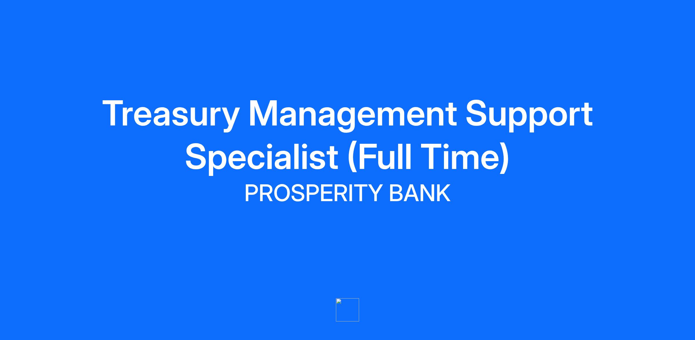 External Applicants: Please apply through Prosperity Bank's Career Center at https://www.prosperitybankusa.com/Careers [https://nam02.safelinks.protection.outlook.com/?url=https%3A%2F%2Fwww.prosperitybankusa.com%2FCareers&data=05%7C02%7Csavina.rodriguezmoreno%40prosperitybankusa.com%7C4351c6288a4f46ccbc9e08dcd40d9146%7C00eda10cf32f45b88e91257da01a8f7c%7C0%7C0%7C638618401959042524%7CUnknown%7CTWFpbGZsb3d8eyJWIjoiMC4wLjAwMDAiLCJQIjoiV2luMzIiLCJBTiI6Ik1haWwiLCJXVCI6Mn0%3D%7C0%7C%7C%7C&sdata=lCPTgOEYEVnrpk5nNGZONxoI2erp7ikQoPkbbLU2VGE%3D&reserved=0]. Applying through any other source may prevent Prosperity from receiving your application. Internal Applicants: If you are a current associate of Prosperity Bank, please apply through the internal Talent - Career Center in ADP. Prosperity Bank is an Equal Opportunity Employer. POSITION PURPOSE This position is responsible for support of Treasury Management Operations Specialists and Remote Deposit Capture Specialists. Work will include maintaining spreadsheets used in RDC and ACH annual risk reviews and those used for Treasury Center Commercial on-line banking reporting. ESSENTIAL FUNCTIONS AND BASIC DUTIES * Assists in monthly RDC annual reviews, pulling data and keeping tracking spreadsheets updated. * Works with RDC and TM OPS Support departments as well as vendors for RDC * Serves as a back-up to Remote Deposit Capture department performing all duties. * Assist with annual ACH risk reviews, preparing data, creating forms, and working with TM OPS support. * Prepares and sends monthly Merchant Account Totals * Prepares and sends monthly EFT Volume Report * Prepares and sends monthly RDC Deposit Totals * Works with other departments during conversions and mergers * Assists in development of processes and procedures. * Assists in collection of data and reporting of data for Treasury Center as needed. * Maintains positive and professional attitude. * Organization skills to maintain daily workflows. * Problem assessment and solving skills to identify solutions to Treasury Management data and research issues * Intermediate knowledge of banking and bank operations * Ability to recognize workflow patterns and offer input regarding improvement opportunities. * Maintain a working understanding of all Treasury Management products. * Maintain orderly records of daily activities. * Treats people with respect; keeps commitments; inspires the trust of others; works ethically and with integrity; upholds organizational values; accepts responsibility for own actions. * Performs the position safely, without endangering the health or safety to themselves or others and will be expected to report potentially unsafe conditions. The employee shall comply with occupational safety and health standards and all rules, regulations and orders issued pursuant to the OSHA Act of 1970, which are applicable to one’s own actions and conduct. * Perform other duties as assigned. The above statements describe the general nature and level of work only. They are not an exhaustive list of all required responsibilities, duties, and skills. Other duties may be added, or this job description amended at any time. SUPERVISORY RESPONSIBILITIES: This position has no supervisory responsibilities. QUALIFICATIONS Education/Certification: High School graduate or equivalent. Some college preferred. 2-3 years of related experience and/or training. Work related experience must consist of Experience with Microsoft Office especially Excel and Word, and proficiency at keyboarding. Skills/Abilities: * Accurate and attention to detail * Verbal, written and interpersonal communication skills with the ability to apply common sense to carry out instructions. * Well organized * Math skills: including the ability to balance accounts; add, subtract, multiply, and divide in all units of measure, using whole numbers, common fractions, and decimals; locate routine mathematical errors. * Ability to solve practical problems and deal with a variety of situations where only limited processes or procedures exists. Ability to interpret a variety of instructions furnished in written, oral, diagram, or schedule form. * Must be able to accommodate to reading documents or instruments, detailed work, problem solving, customer contact, reasoning, math, language, presentations, verbal and written communication, analytical reasoning, stress, deadlines, multiple concurrent tasks, and constant interruptions. * Regular attendance required. * Strong self-s Hours: Monday - Friday 8:00 am to 5:00 pm 40 hours per week