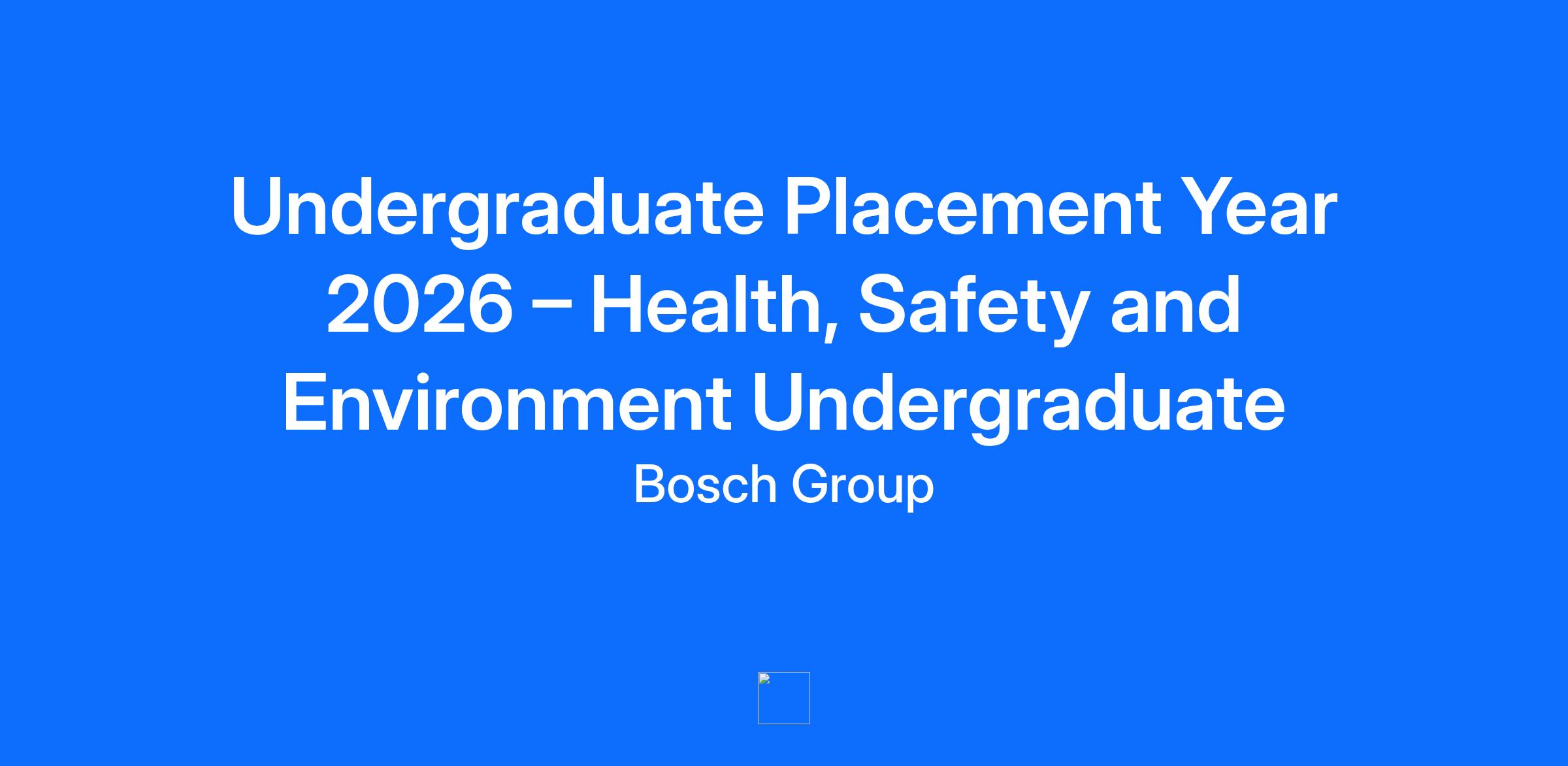 Undergraduate Placement Year 2026 – Health, Safety and Environment Undergraduate