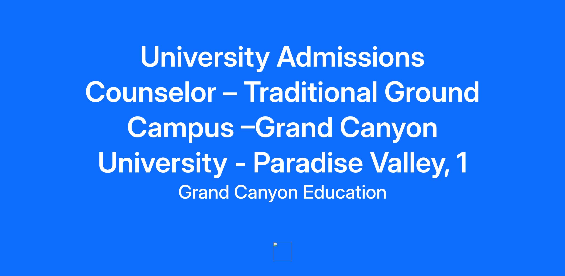 University Admissions Counselor – Traditional Ground Campus –Grand Canyon University Come Grow With Us Grand Canyon Education (GCE) is a rapidly growing educational service company that has long been an industry leader in providing educational, operational, and technological support services to the post-secondary education sector. Formerly part of Grand Canyon University (GCU), GCE still works closely with GCU to benefit thousands of students, families, and the local inner-city community. We put people first, drive innovation, and do good in the community that we live and work in. Join us at Grand Canyon Education and begin your career helping Grand Canyon University- Traditional Ground Campus students succeed! We are looking for a motivated University Admissions Counselor to oversee the Paradise Valley, I territory. Starting salary is $58,656 per year with a tenure-based compensation plan that allows you to increase your earning potential upon the completion of each year-long recruitment cycle. Who you are: * Must live in or near Paradise Valley, AZ* You find fulfillment in serving others and are passionate about the power of education. You’ve demonstrated success as a team player who hustles, is adaptable to change, and does everything intentionally. You know it’s not all about achieving your goals. While that does get you excited, what you really thrive on is making a positive impact on the world by helping high school students make one of the most important decisions in their lives through a quality education and community at Grand Canyon University’s campus in Phoenix, AZ. Now is the time to bring your talents to Grand Canyon Education, where you’ll have the opportunity to be involved in your local community and play an integral role in helping Grand Canyon University students find their purpose from application through their first few weeks on campus. Here’s a taste of how you’ll make your mark as a University Admissions Counselor with us. As a University Admissions Counselor, every counselor: Has a servant’s heart. You’ll be involved in the community through hosting and implementing event/activity plans for your territory that build awareness of our academic programs and campus community and drive inquiry generation. Through a variety of mediums, you will use your passion for serving others to provide exceptional counseling to prospective students and their families. Whether in-person, over the phone, via email, text or Zoom, you will champion the GCE mission, promoting Grand Canyon University student success and institutional growth. Hustles. You’ll be busy using your unique ability to connect with community college students, faculty and staff in local community colleges and engage all major stakeholders in your territory, while maintaining a full schedule that includes fairs, school visits, presentations, community/campus events and hosting campus visits. Bleeds purple. You’ll take pride in being the face of Grand Canyon University in your territory and will not only promote our transformation, but you will get to be a part of it. Is purposeful. This is a work from home role with ambitious targets! Working independently, you’ll be using your out-of-the-box critical thinking skills to support prospective Grand Canyon University campus students and families through the admissions process, guiding them on the right path towards a successful campus experience. The role might be right for you if you have: A bachelor’s degree. No delinquent or in default on a federal student loan as verified in your credit report. If in a rehabilitation program, your credit report must reflect that you are current, not delinquent, on your payments. Outstanding time management and organization skills. In this role, you’ll be wearing many hats, so you’ll need to show that not only have you honed your time management skills, you also know how to organize and prioritize competing priorities even while travelling. Clear communication and engaging presentation skills. You can explain just about anything to anyone and you’re comfortable communicating in person, in writing and on the phone. You are confident and can engage any room while presenting no matter what audience is in front of you. You’ll also need to have well developed listening skills. Self-motivation and drive to succeed. You volunteer for new challenges without waiting to be asked and love to go above and beyond what’s expected. You’re going to take ownership of the time you spend with Grand Canyon University students and truly make a difference. High emotional intelligence. In this role, you’ll be coaching a diverse range of Grand Canyon University students and families, each with unique circumstances. You’ll also have relationships with community colleges and their staff to develop and nurture. Ability to demonstrate empathy is key to success in this role. A valid driver's license, reliable transportation, a flexible schedule and is willing to travel. Since this role requires extensive travel in your territory, you’ll need a clean driving record and ability to use your personal vehicle. Some events require evening and/or weekend availability. For those who reside outside of Phoenix, you can expect to travel here 1-3 times per month. Computer literacy. As part of a remote workforce, we rely on a number of digital tools to help you execute your work and keep you accountable. Proficiency in Microsoft Office Suite is required. Bonus points if you have: Attended Grand Canyon University on campus and as an Alumni, can share your experience with prospective students. Relevant industry related professional experience. Experience working with CRM tools. What we’ll offer in return: A career where your work makes a difference. A stable income with a good salary. Opportunity to own your part of the business without the risks of owning your own business. Ongoing professional development and growth. Outstandi