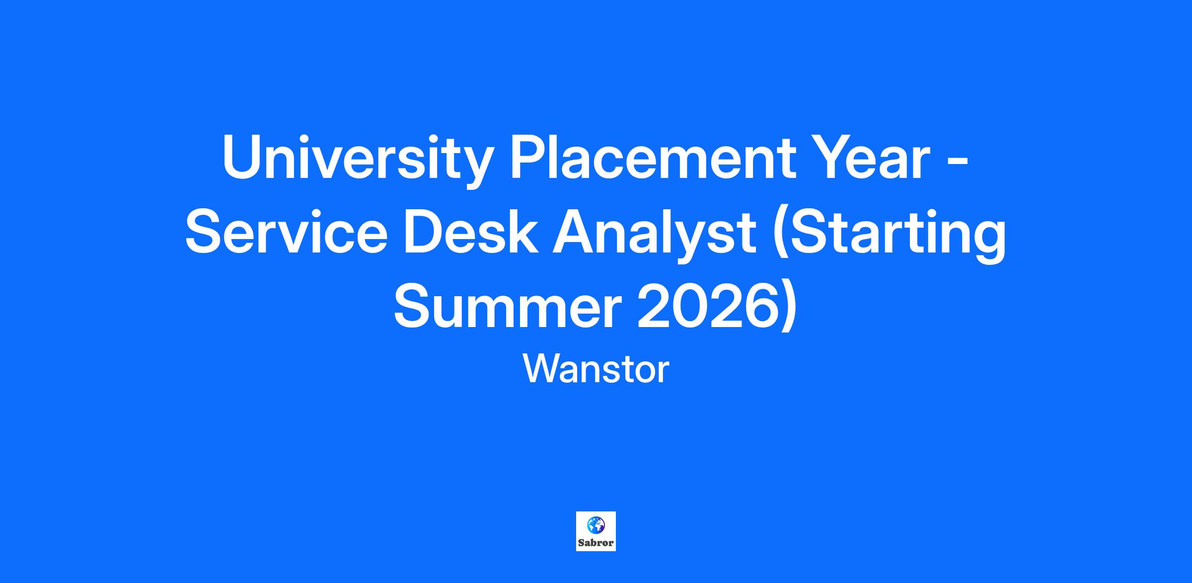 University Placement Year - Service Desk Analyst (Starting Summer 2026) Department: Service Desk Internal Employment Type: Fixed Term - Full Time Location: Wanstor London Description Service Desk Analyst - Placement year Start date: Summer 2026 Job Role: 1 year University placement Working pattern: A variety of shift patterns including weekends Location: Onsite - London Bridge Interviews: January 2026 As part of our placement intake for Summer 2026, you will gain superb experience of IT within a busy Service Desk environment. You will be helping to ensure the smooth running of IT operations at customer sites. Learning to take ownership of and manage client requests, management of the process using ITIL Standards through to successful resolution of the client request or incident. Our service desk analyst roles are one of the many entry points into a career in IT. A Service Desk Analyst role is the gateway to progression into 2nd and 3rd line support in specialisations such as: Networking Infrastructure Security DevOps Team Leadership Project Management ...and beyond. This opportunity will equip you with all the necessary skills and experience to fast-track your development into a future leader, whichever specialisation you choose to pursue. If you are looking for a place that will help you launch your IT career then this is the role for you. Wanstor is a place of opportunities for people to reach their full potential and pursue their ambitions. We have a team of brilliant minds and personalities who come together to deliver exception projects and provide amazing customer service. We all work together to make sure we have a collaborative and supportive environment that stimulates growth. What You'll Do Provide IT support at a 1st line level Provide excellent, proactive, customer service Support our customers on the phone, via live chat and over email Proactively solve customer queries Continually improve the way the service desk work What You'll Need To be eligible for this role, you must be currently studying at university and undertaking a placement year that begins in summer 2026. This role is not open to recent graduates. You may have some of the following: A genuine interest in IT and technology, whether through your degree, personal projects, or helping friends/family troubleshoot issues. Basic understanding of IT support concepts (e.g., what a service desk does, common IT terminology). Willingness to learn frameworks such as ITIL and how incident, problem, and change management work in practice. Good communication skills and a desire to deliver excellent customer service. Ability to stay organised, manage competing tasks, and ask for support when needed. A positive, proactive attitude and the motivation to take initiative as you develop confidence. Flexibility to work different shift patterns, including occasional weekends, as part of the team rota. What You'll Love Generous Time Off: Enjoy 24 days of annual leave, increasing by 1 day each year up to 28 days, plus Bank Holidays. Continuous Learning: Participate in regular lunch and learn sessions with both internal and external speakers. Volunteer Opportunities: Contribute to your community with 2 paid volunteer days each year. Team Spirit: Join a friendly team and engage in various social events organized throughout the year. Health and Wellbeing: Benefit from health programs to keep you at your best.