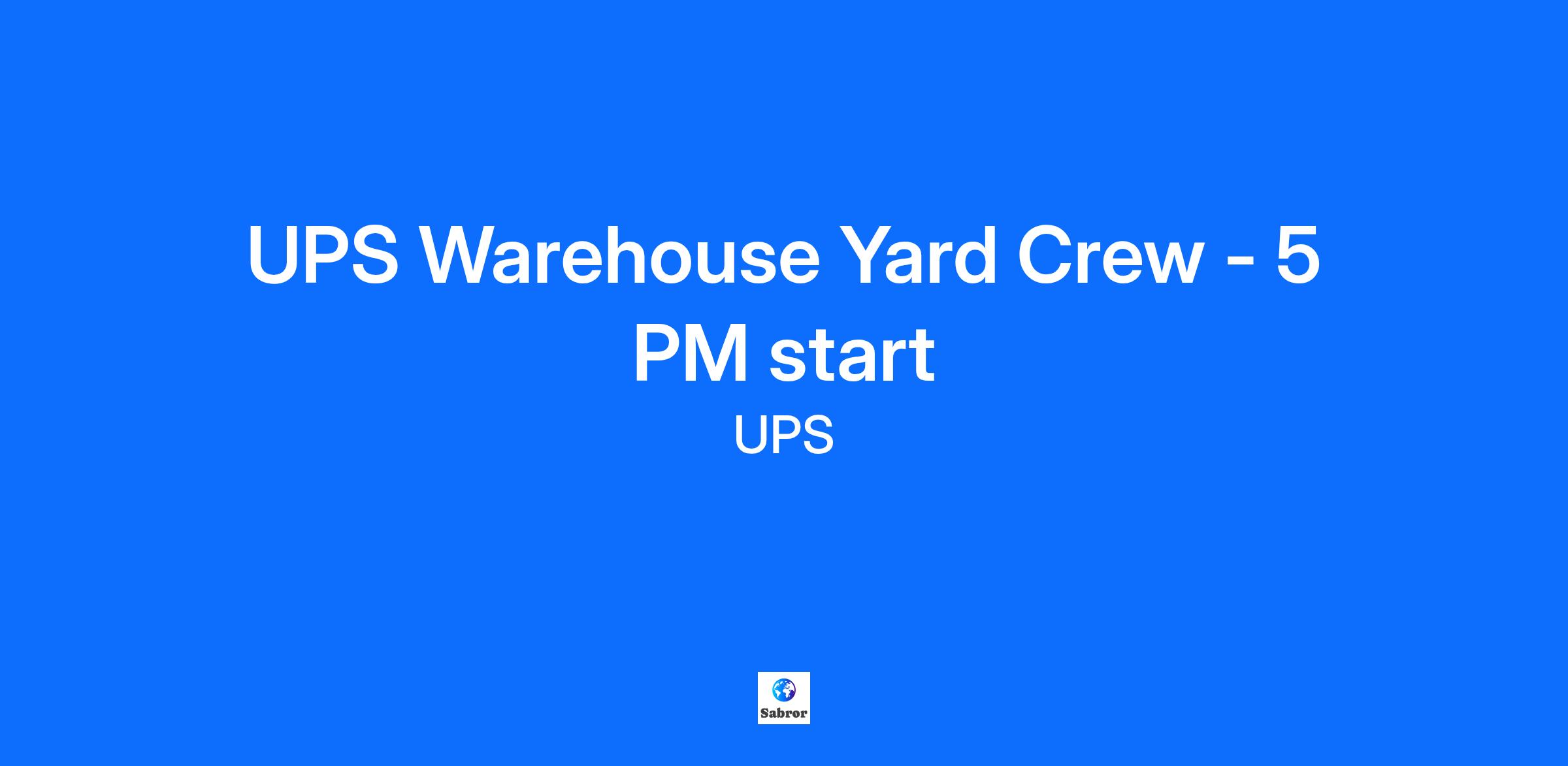 UPS Warehouse Yard Crew - 5 PM start