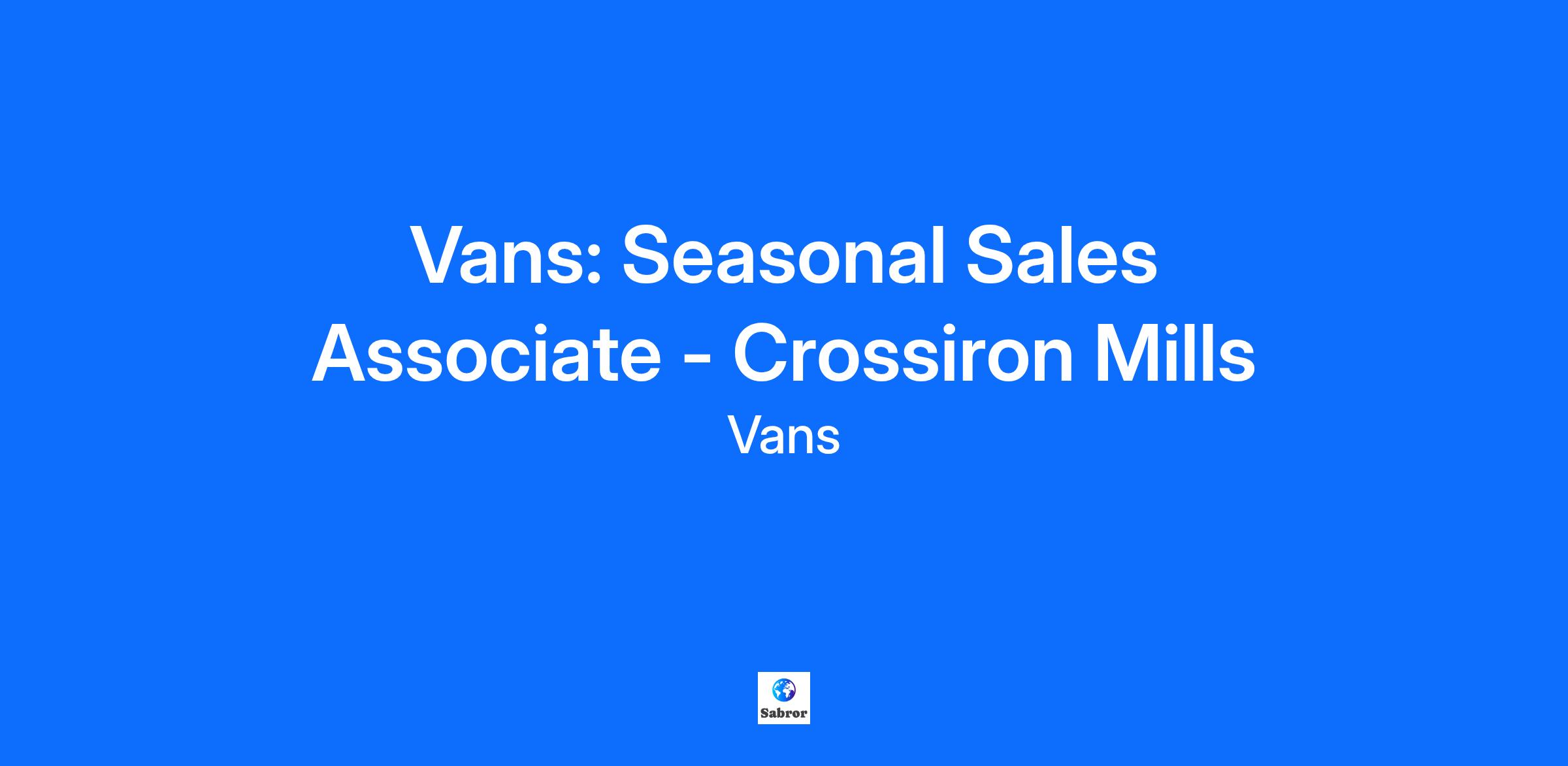 Vans: Seasonal Sales Associate - Crossiron Mills