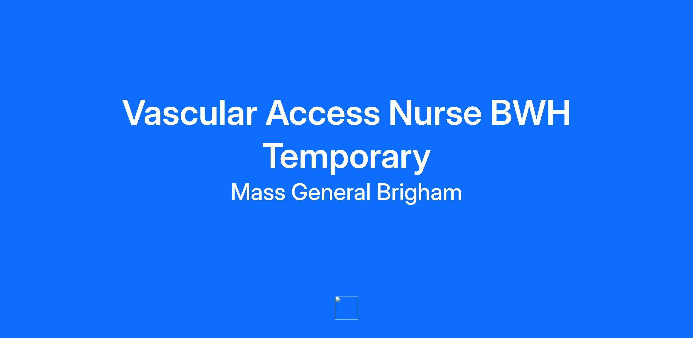 Site: The Brigham and Women's Hospital, Inc. Mass General Brigham relies on a wide range of professionals, including doctors, nurses, business people, tech experts, researchers, and systems analysts to advance our mission. As a not-for-profit, we support patient care, research, teaching, and community service, striving to provide exceptional care. We believe that high-performing teams drive groundbreaking medical discoveries and invite all applicants to join us and experience what it means to be part of Mass General Brigham. Shift: 36hr Variable Rotation 12 week coverage starting 2/2/26 Job Summary Summary The Registered Nurse is a professional nurse registered in Massachusetts who is responsible and accountable for planning and providing patient care for assigned patients in accordance with Nursing Standards of Care as set forth in the Nursing Department's Clinical Practice Manual. The registered nurse demonstrates initiative, knowledge and clinical skills in caring for the patient with complex needs. The Registered Nurse demonstrates the ability to effectively manage patients by assuming full responsibility for the assessment, plan, implementation and evaluation of patient care and is directly responsible to a designated nurse manager, or supervisor. Qualifications Education: Graduate of an approved school of nursing with current registration in Massachusetts. For newly licensed nurses a Bachelor of Science Degree in Nursing is required. 3yr+ recent Vascular access team / IV team experience required. Ultrasound guided IV required PICC experience preferred Knowledge, Skills and Abilities - The RN must show evidence of the basic analytic thinking necessary to care for a group of patients. - Must demonstrate observational skills and the ability to set priorities. - Must be able to function under stress with good interpersonal and communication skills. - Must demonstrate effective skills in applying hospital standards in area of service, teamwork, communication, respect for others, and time/priority management. Additional Job Details (if applicable) Education: Graduate of an approved school of nursing with current registration in Massachusetts. For newly licensed nurses a Bachelor of Science Degree in Nursing is required. 3yr+ recent Vascular access team / IV team experience required. Ultrasound guided IV required PICC experience preferred Remote Type Onsite Work Location 75 Francis Street Scheduled Weekly Hours 36 Employee Type Regular Work Shift Rotating (United States of America) Pay Range $41.71 - $105.65/Hourly Grade MNA333 At Mass General Brigham, we believe in recognizing and rewarding the unique value each team member brings to our organization. Our approach to determining base pay is comprehensive, and any offer extended will take into account your skills, relevant experience if applicable, education, certifications and other essential factors. The base pay information provided offers an estimate based on the minimum job qualifications; however, it does not encompass all elements contributing to your total compensation package. In addition to competitive base pay, we offer comprehensive benefits, career advancement opportunities, differentials, premiums and bonuses as applicable and recognition programs designed to celebrate your contributions and support your professional growth. We invite you to apply, and our Talent Acquisition team will provide an overview of your potential compensation and benefits package. EEO Statement: 2200 The Brigham and Women's Hospital, Inc. is an Equal Opportunity Employer. All qualified applicants will receive consideration for employment without regard to race, color, religious creed, national origin, sex, age, gender identity, disability, sexual orientation, military service, genetic information, and/or other status protected under law. We will ensure that all individuals with a disability are provided a reasonable accommodation to participate in the job application or interview process, to perform essential job functions, and to receive other benefits and privileges of employment. To ensure reasonable accommodation for individuals protected by Section 503 of the Rehabilitation Act of 1973, the Vietnam Veteran’s Readjustment Act of 1974, and Title I of the Americans with Disabilities Act of 1990, applicants who require accommodation in the job application process may contact Human Resources at (857)-282-7642. Mass General Brigham Competency Framework At Mass General Brigham, our competency framework defines what effective leadership “looks like” by specifying which behaviors are most critical for successful performance at each job level. The framework is comprised of ten competencies (half People-Focused, half Performance-Focused) and are defined by observable and measurable skills and behaviors that contribute to workplace effectiveness and career success. These competencies are used to evaluate performance, make hiring decisions, identify development needs, mobilize employees across our system, and establish a strong talent pipeline. Combat disease. Hold a hand. Help people. Impact the world. Mass General Brigham is a passionate, welcoming community where minds meet caring hearts. Come be a part of the world’s most powerful force in medicine, where every role is important in changing lives. Are you ready? Our history includes New England hospitals founded over 200 years ago, some of the first and most prestigious hospitals in the world. Built on the legacy of two leading academic medical centers, we’re more than a system—we’re leaders in the practice of medicine. Mass General Brigham is committed to serving the community. We are dedicated to enhancing patient care, teaching and research, and taking a leadership role as an integrated health care system. We recognize that increasing value and continuously improving quality are essential to maintaining excellence.