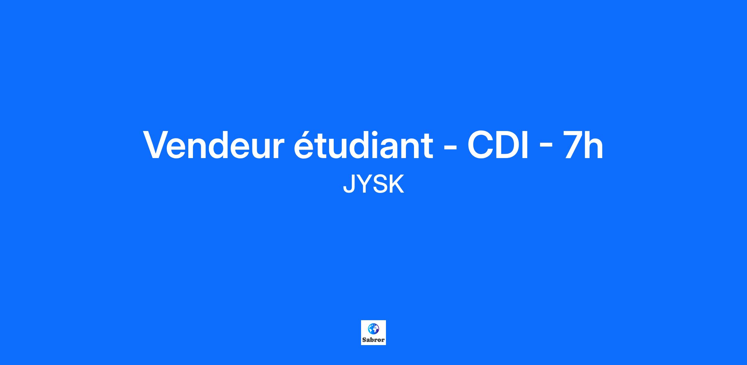 Description de l'entrepriseNous pensons que nos employés sont la clé de notre succès. Nous sommes passés d'un seul magasin en 1979 à plus de 3 000 magasins dans le monde aujourd'hui. C'est pourquoi nous nous efforçons d'offrir de nombreuses possibilités d'évolution au sein de JYSK. Nos trois valeurs fondamentales chez JYSK - Commerçant, Collègue et Esprit d’entreprise - expriment le comportement et l'attitude que nous attendons les uns des autres. Se faire mutuellement confiance est la base du management Danois. Nous sommes convaincus que la délégation et la liberté vont de pair avec responsabilité.Description du posteTu es ambitieux et motivé ? Tu aimes la polyvalence et un environnement de travail dynamique ? 💪 Tu recherches un job à combiner avec tes études ?Postule et rejoins-nous en tant que vendeur(se) étudiant(e) !CE QUE NOUS T’OFFRONSTravailler chez JYSK, c’est rejoindre une entreprise Retail qui a pour ambition d’être le choix numéro 1 des candidats. Nous sommes dynamiques et ici, tes idées sont entendues, tu es impliqué(e) et ton développement est crucial pour nous. En tant qu'ambassadeur de JYSK, tu bénéficieras des avantages suivants :Travailler les samedis et pendant les vacances scolairesDes challenges internes avec des récompenses à la cléDes activités avec ton équipeDes bonus en fonction des ventesOn ne sait jamais … beaucoup d’étudiants ont décidé de continuer l’aventure JYSK après leurs études. De nombreuses évolutions internes sont possibles. En savoir plus : ici.20% de réduction dans les magasins JYSK et du groupe Lars LarsenL’occasion de participer à notre fête annuelle du personnel. Être étudiant chez JYSK c’est faire partie d’une équipeCE QUE SERA TON PROCHAIN JOBTu offres à nos clients un service de qualité avec le sourire !Tu participes au bon fonctionnement du magasinTu participeras à la réception, au déballage et au rangement des marchandises, tant dans l'entrepôt que dans le magasin. Le travail physique ne te fait pas peurQualificationsCE QUE TU DOIS APPORTERTu es extraverti(e), prends des initiativesTu es enthousiaste et aimes parler aux clientsTu es un(e) bon(ne) collègue, ton équipe peut compter sur toiTu aimes la polyvalence et es flexible : tant au niveau des tâches que des horairesTu souhaites avoir un contrat de 7h, 14h ou autre pour travailler en plus de tes étudesInformations complémentairesProcess de recrutement chez JYSK France : Nous traitons les candidatures de manière continue et clôturons le recrutement lorsque nous avons trouvé le bon candidat.Tu peux t’attendre à recevoir des tests de logique et de personnalité qui permettront de compléter ton dossier de candidature. Si ta candidature retient notre attention, nous t’inviterons à un entretien, au cours duquel nous sommes impatients d'entendre ta motivation pour le poste.A propos de nous JYSK souhaite inclure tout le monde, quel que soit l'âge, l'identité de genre, les origines, l'orientation sexuelle, la capacité physique ou mentale, l'ethnicité et l'expérience. Ensemble, nous assurons une culture inclusive qui encourage, soutient et célèbre les diverses voix de nos employés. Parce qu'un grand mélange d'esprits, de talents et de personnalités uniques fait de nous une équipe plus forte. Pour toute question ou renseignement n’hésite pas à nous adresser un mail à [email protected] , nous serons ravis de t’aider !