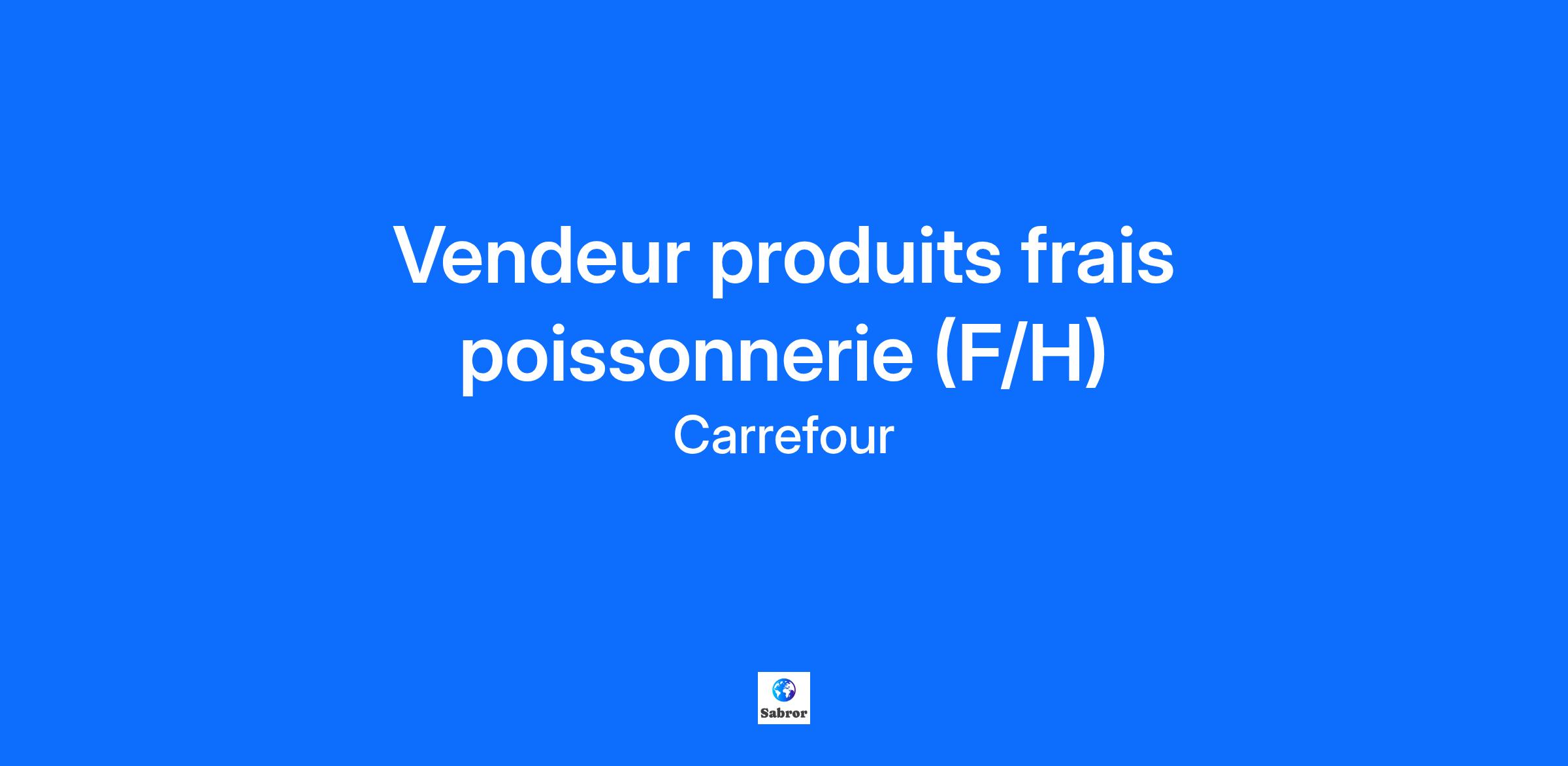 A propos de l'offre : Le saviez-vous ? Créateur de l’hypermarché, Carrefour reste fidèle à ses racines tout en se réinventant pour permettre à chacun de mieux manger : plus sain, plus local, plus responsable. Leader mondial de la distribution, nous sommes engagés pour la diversité, la RSE et la transformation digitale, tout en créant un environnement de travail inclusif et stimulant. Nos atouts pour y parvenir ? Un réseau multi format, multi métiers avec des collaborateurs passionnés, qui s’engagent, pour réussir la transition alimentaire pour tous. Carrefour recherche pour son hypermarché un(e) : Vendeur au rayon produits frais poissonnerie (F/H) Vos missions : Accueillir et conseiller les clients du rayon poissonnerie Implanter les produits et mettre en scène les rayons Equilibrer l'approvisionnement Réaliser les contrôles d'hygiène Votre profil : Pas de formation particulière requise, la connaissance des produits serait un plus. Vous appréciez travailler en équipe dans un environnement dynamique, au contact de la clientèle. Les avantages Carrefour : Une rémunération sur 13,5 mois (après un an d'ancienneté) Intéressement + participation Mutuelle / prévoyance Offres CSE 12% de remise sur achat Chez Carrefour, nous avons à cœur de ne passer à côté d’aucun talent et sommes fiers de compter des équipes représentatives de la société dans son ensemble. Nous encourageons ainsi tous types de profils à postuler à cette offre et garantissons un processus de recrutement dénué de toutes formes de discriminations. Retrouvez les témoignages de nos collaborateurs qui vous parlent de leur métier sur notre site : https://recrute.carrefour.fr