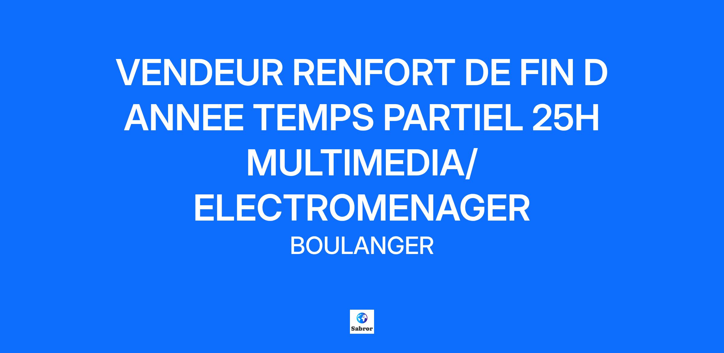 VENDEUR RENFORT DE FIN D ANNEE TEMPS PARTIEL 25H MULTIMEDIA/ ELECTROMENAGER