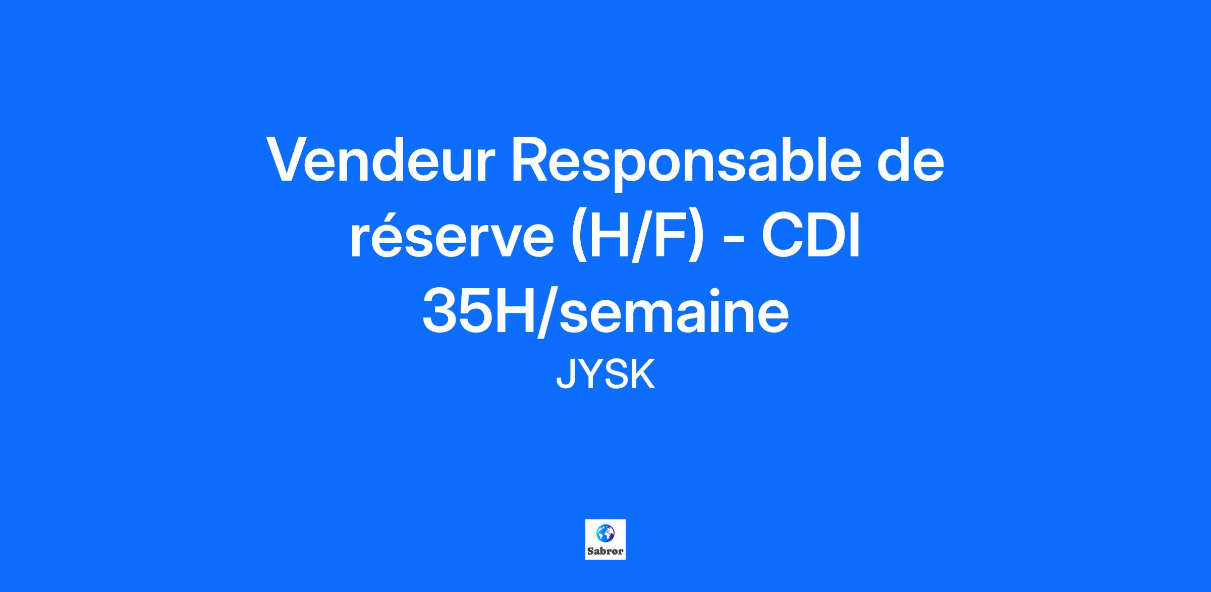 Vendeur Responsable de réserve (H/F) - CDI 35H/semaine