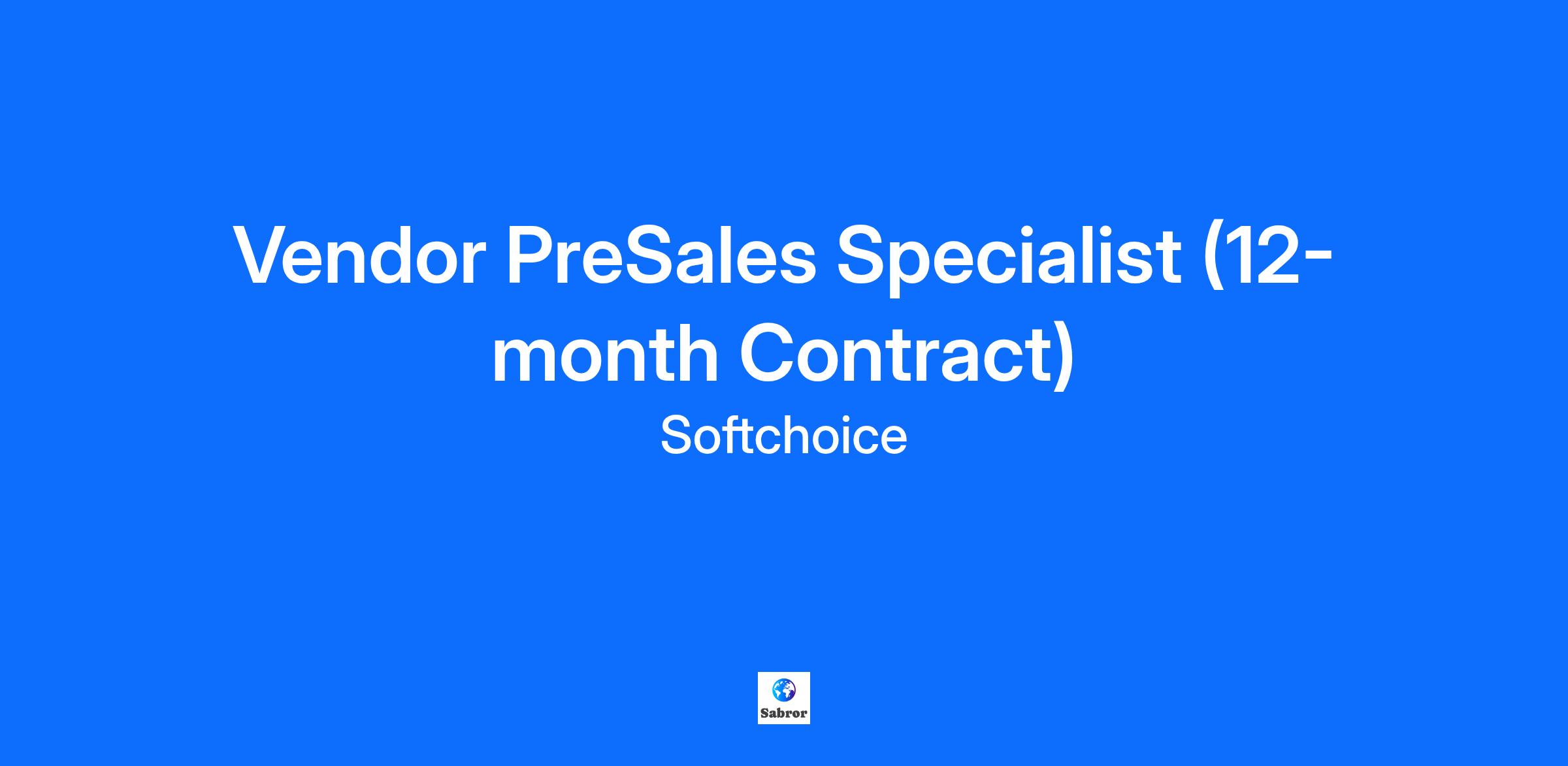 Vendor PreSales Specialist (12-month Contract)