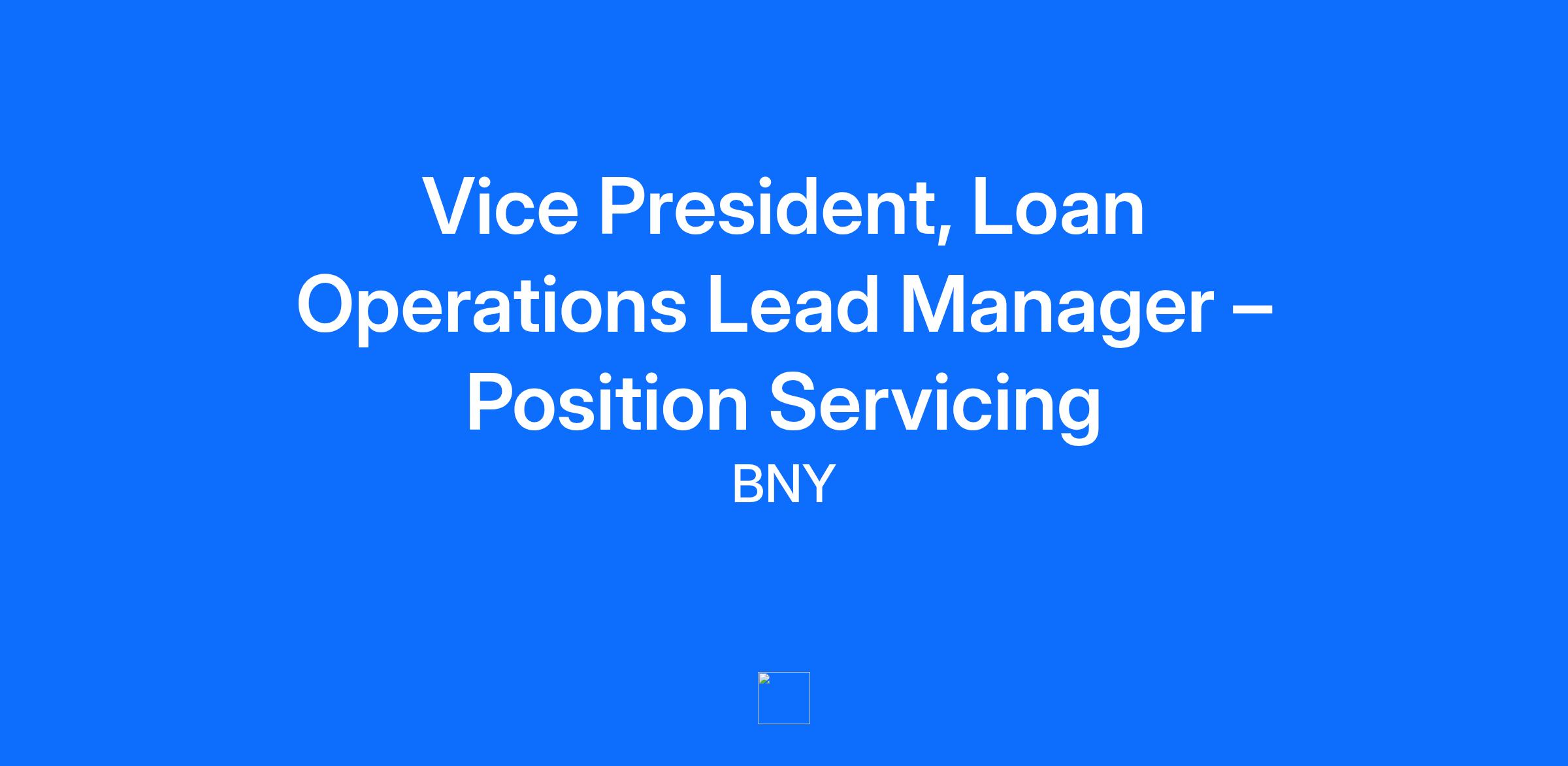 Vice President, Loan Operations Lead Manager – Position Servicing