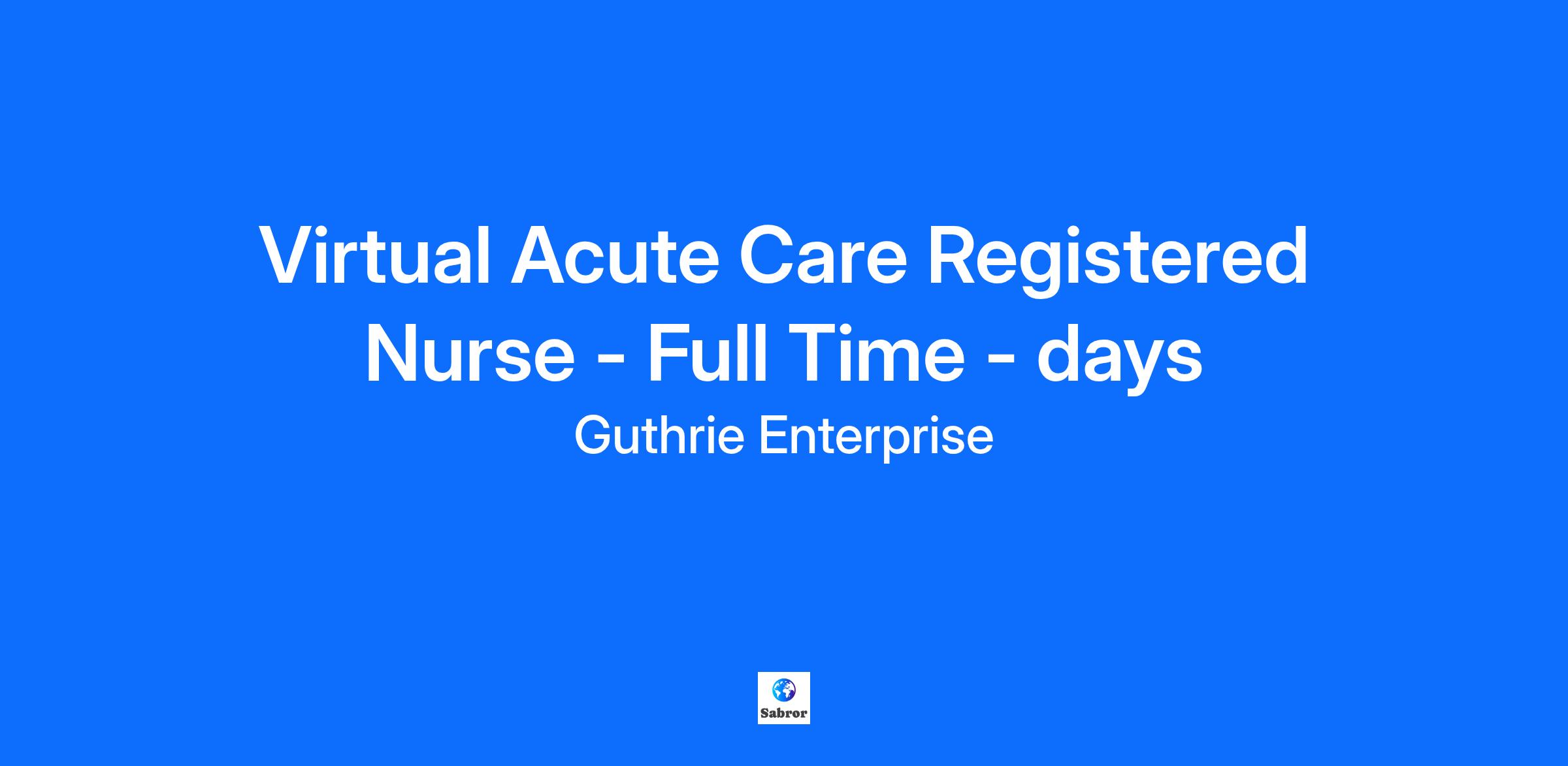 Position Details: This Virtual Acute Care Registered Nurse must work out of the Big Flats NY office and will provide virtual support to bedside nurses at all Guthrie Hospital inpatient acute care (non-critical care) units.