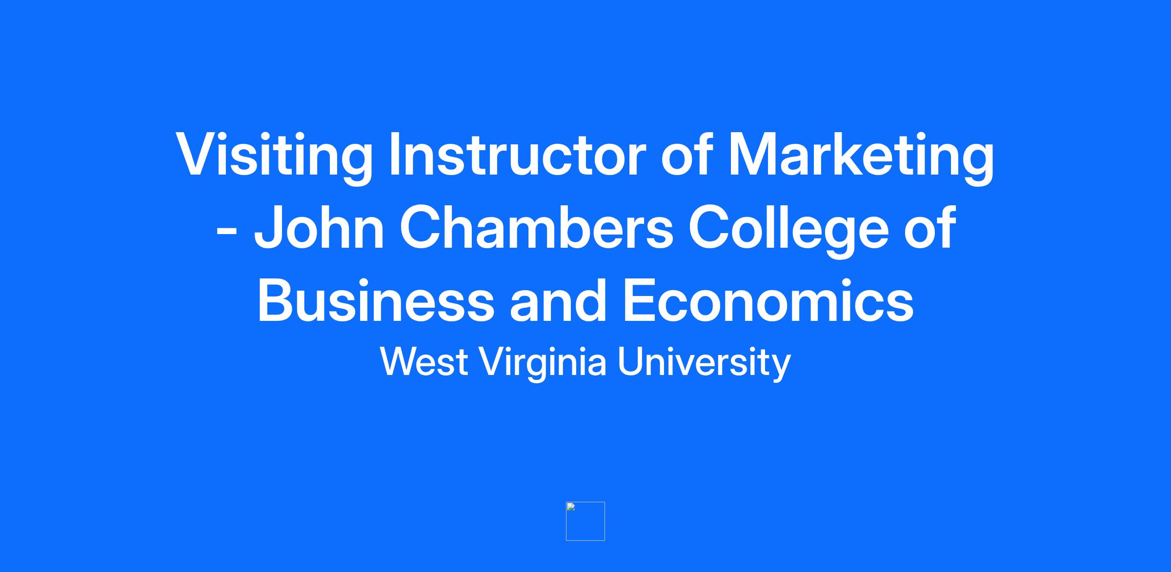 The Department of Marketing in the John Chambers College of Business and Economics at West Virginia University (located in Morgantown, WV) invites applications for a Visiting Instructor Positions starting in August 2026. The initial appointment will be for one year with a potential extension to two years based on the availability of funds, performance of the employee, and the needs of the department. The position will involve Teaching in marketing and related disciplines. The visiting instructor will be expected to teach eight courses (24 credits total) in marketing and related areas in the academic year and support the department’s research and service needs. The assignment of courses will be based on the teaching needs of the department and the qualifications/experience of the selected candidate. These courses could be across different teaching modes (face-to-face, online, or hybrid) and might involve new course development. Candidates with a doctorate degree (PhD or DBA) in marketing and related fields are encouraged to apply. Salary and benefits are appropriate for experience and qualifications. The position and start date are subject to budget approval. Qualified candidates must hold at the time of appointment a doctorate degree in marketing or a related field that involve significant coursework and research relevant for marketing. PhD or DBA candidates in the advanced stages of their dissertation will also be considered but they should have earned their PhD or DBA degree before the start date of this position. West Virginia University (and The John Chambers College of Business and Economics) is especially interested in qualified candidates who can contribute, through their research, teaching, and/or service, to the excellence of the academic community. Application Process Review of applications will begin immediately and will continue until the position is filled. Applicants must submit the following items electronically: (1) a letter of interest, (2) curriculum vitae, (3) research statement, (4) teaching statement, (4) evidence of teaching effectiveness, if available (e.g., prior teaching evaluations, syllabi) and (5) contact information for three references. General inquiries may be directed to Dr. Annie Cui, Marketing Department Chair, at Annie.cui@mail.wvu.edu.